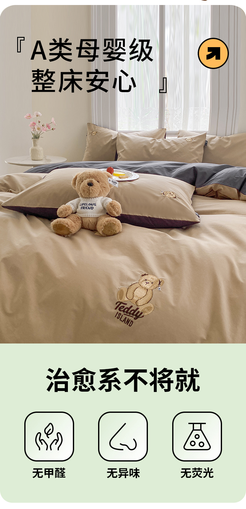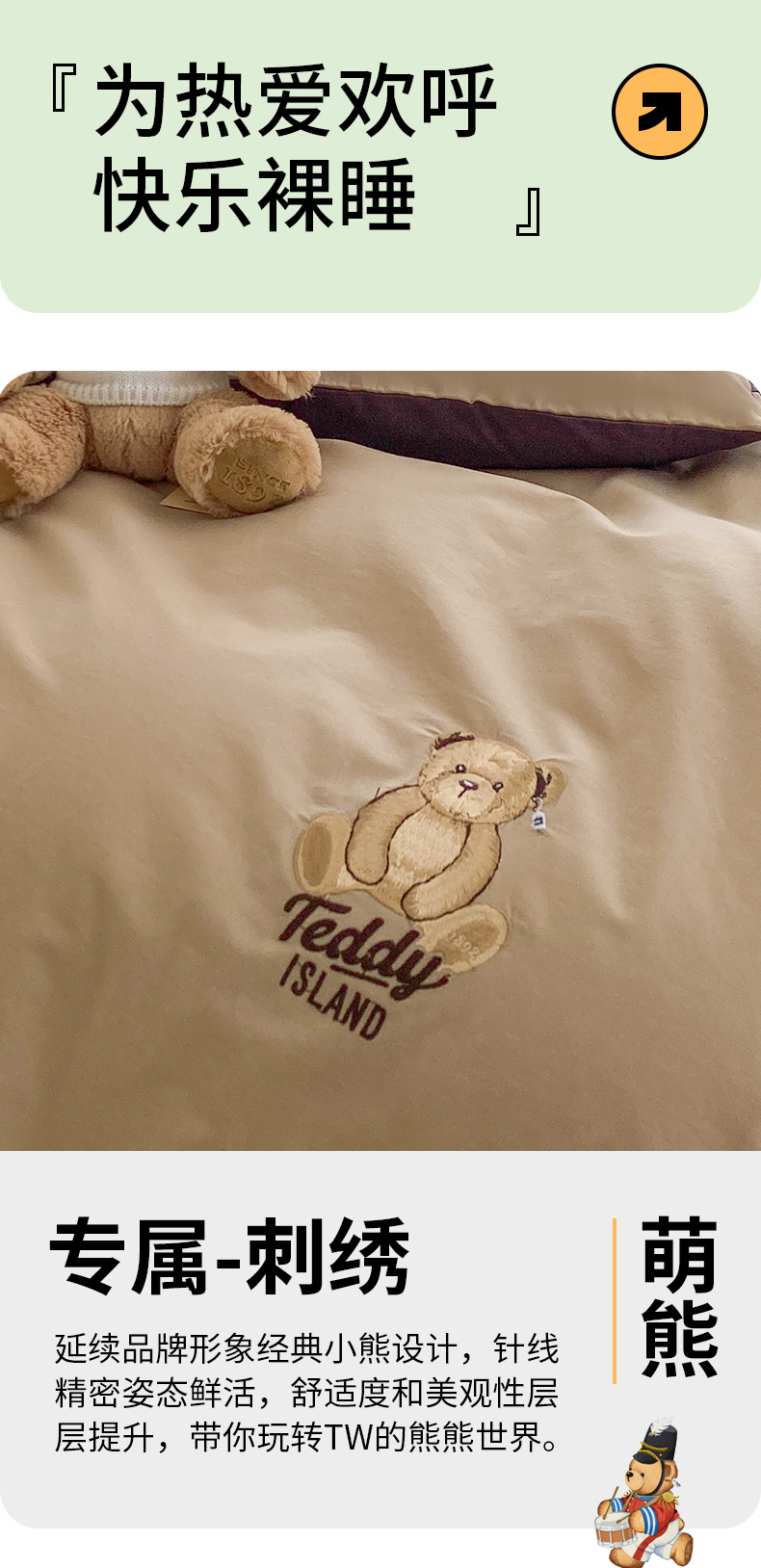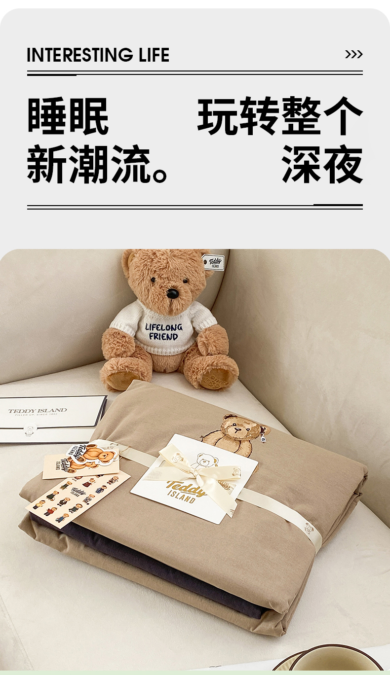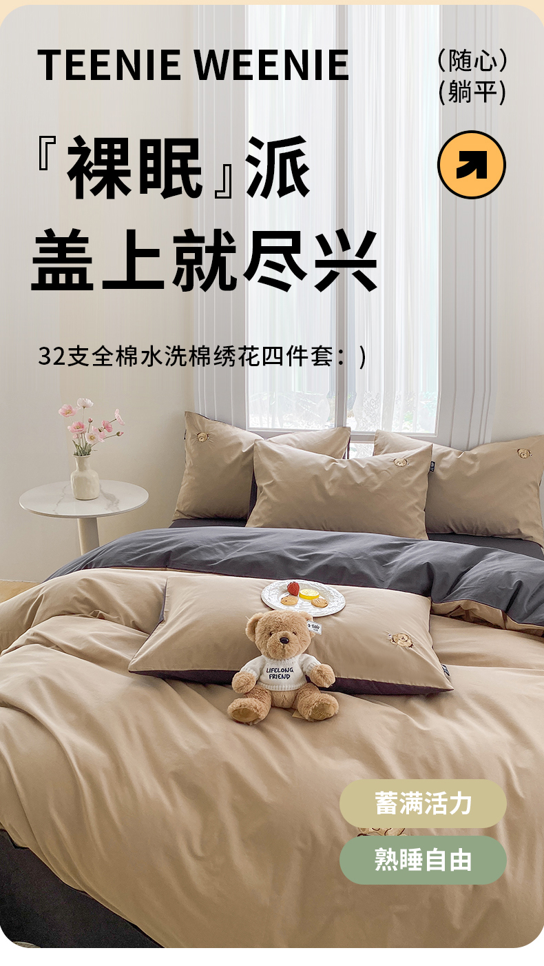 当前位置: 91家纺网 > 商品网购 > 床品套件 > 四件套 > 水洗棉四件套 > 泰迪爱兰Teddy ISLAND 2026新款32支全棉水洗棉绣花三件套四件套 驼色+深灰