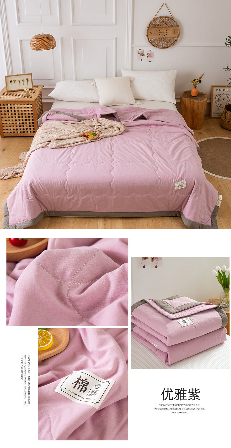 天瑜 2024全棉夏被棉花芯纯色水洗棉夏凉被可水洗空调被 优雅紫,优雅紫