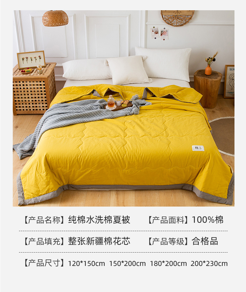 商品名称:天瑜家纺 2025新款全棉纯色水洗棉夏被被子被芯 明亮黄
