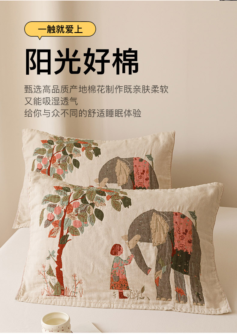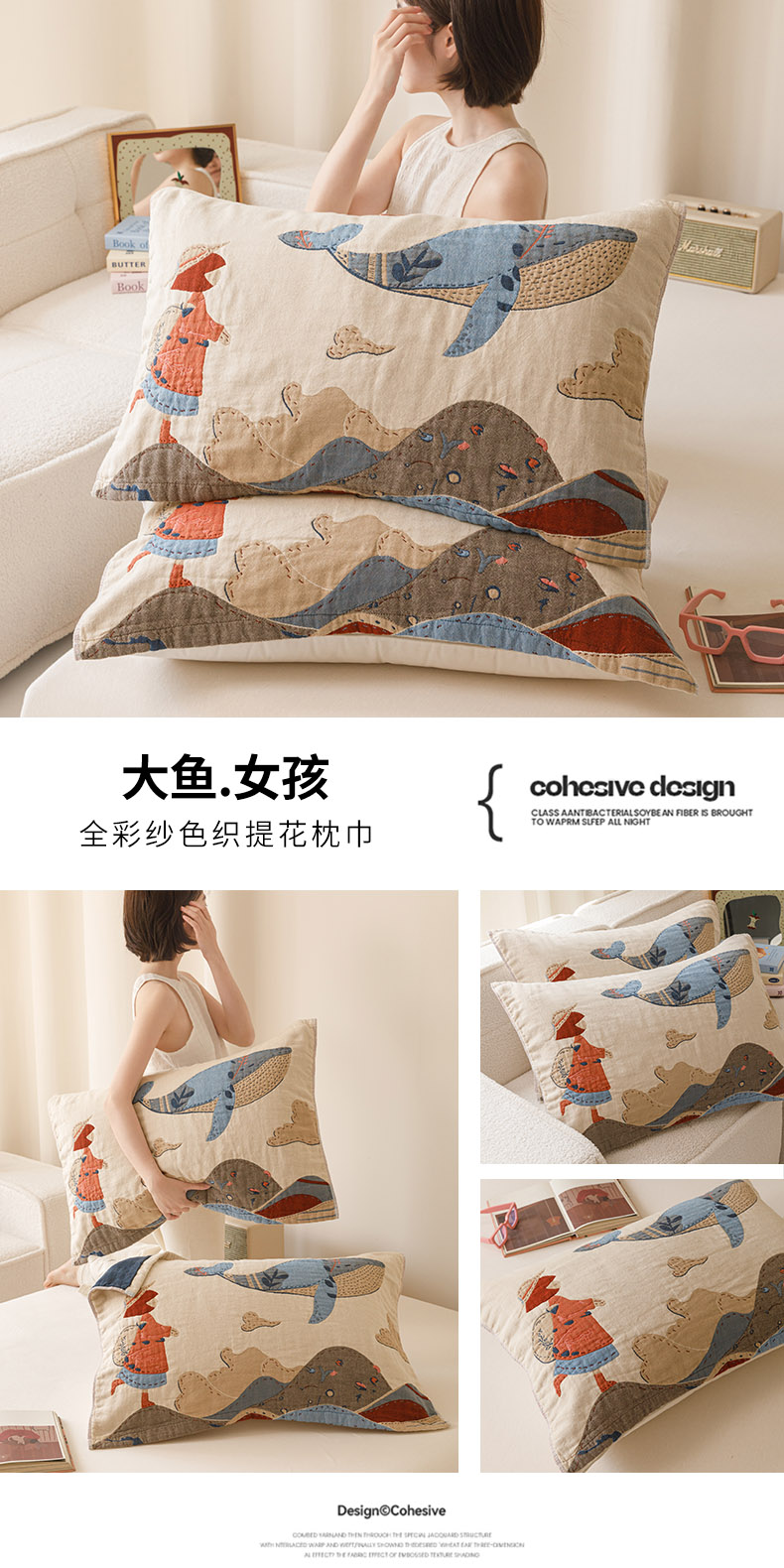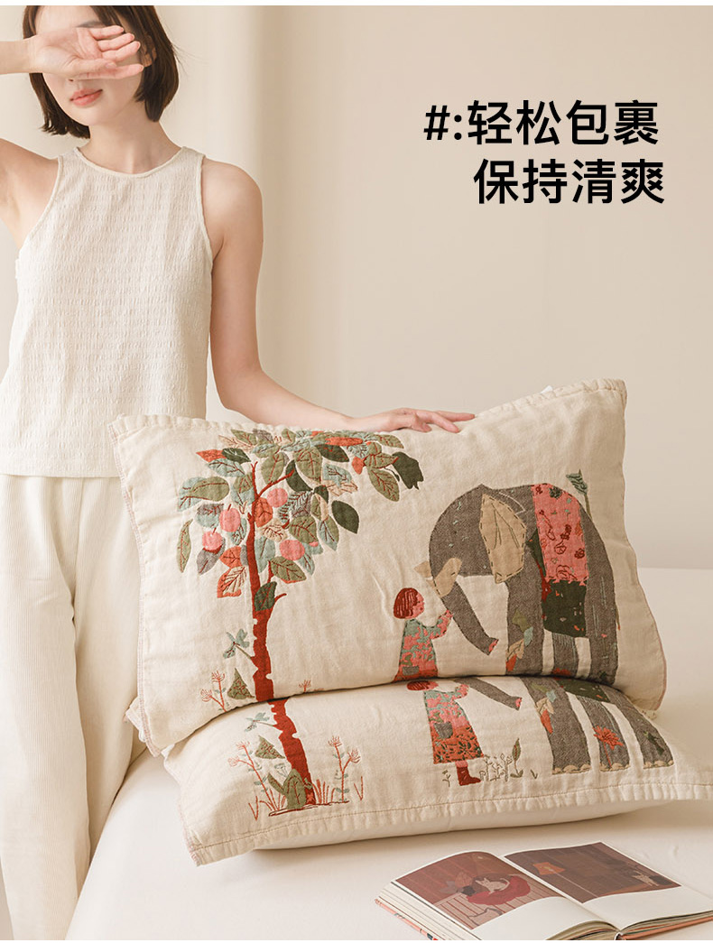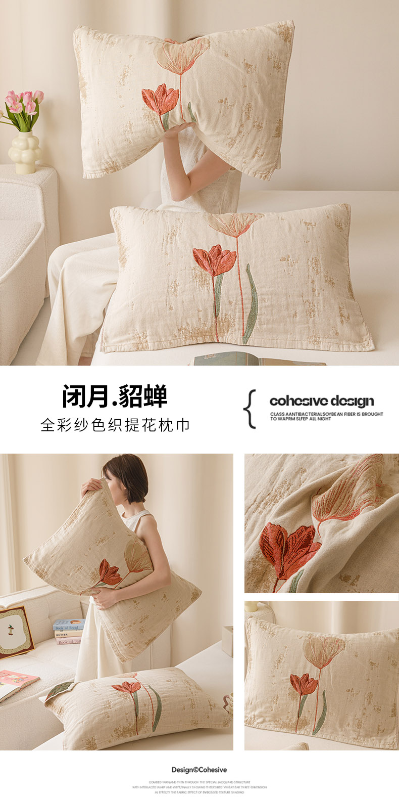 爱港家纺 2025新款全棉色织纱枕巾 花卉枕头巾 隔热耐脏防滑枕巾 枕巾-和谐-自然 52*75cm/对