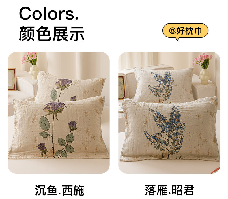 (总)爱港家纺 2025新款全棉巴恩风纱布枕巾 隔热 耐脏,防滑,朝歌,卷轴,喀什,凉山,楼兰,麦城,牧野,那曲,组合