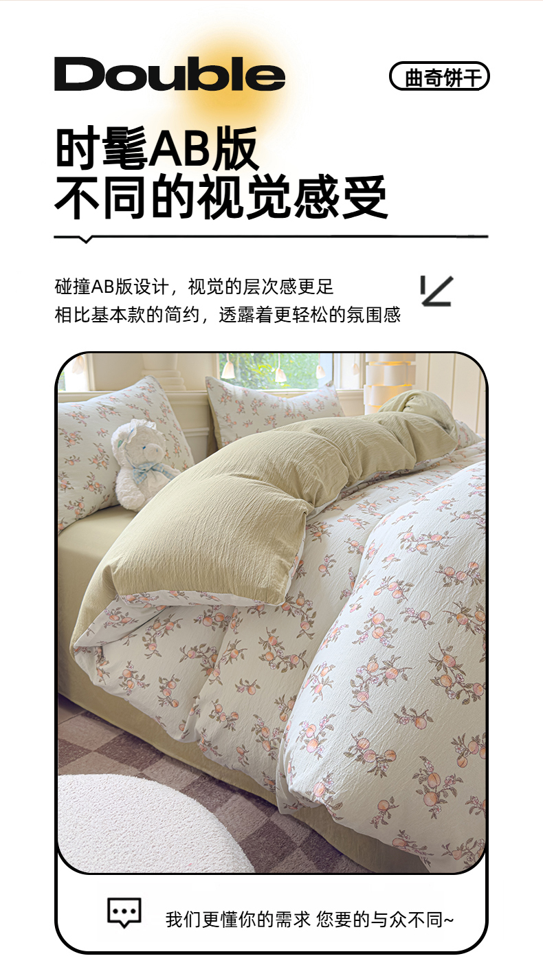 当前位置: 91家纺网 > 商品网购 > 床品套件 > 四件套 > 其它四件套 > 蓝淋家纺 2025新款亲肤舒适皱皱棉印花四件套 秋实-绿