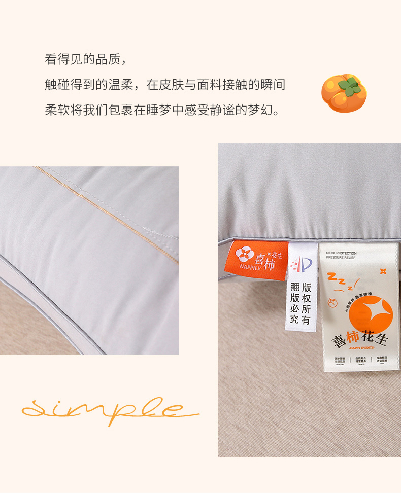 当前位置: 91家纺网 > 商品网购 > 枕头/枕芯/保健枕/颈椎枕 > 天意美枕芯 2025新款喜柿花生枕头枕芯 白色 48*74cm/只