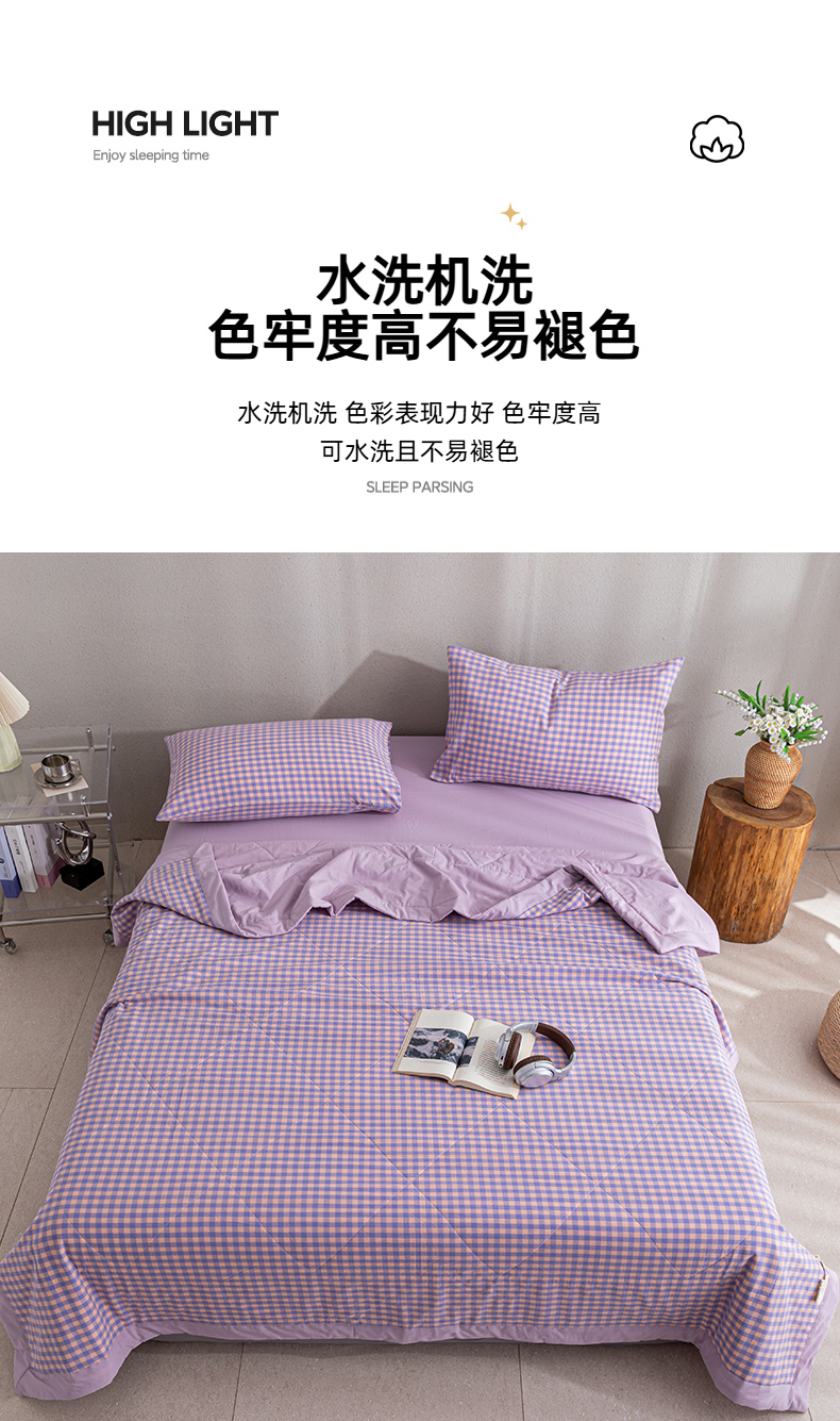 天瑜 2024全棉夏被棉花芯纯色水洗棉夏凉被可水洗空调被 优雅紫,优雅紫