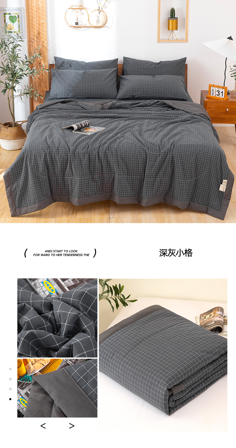 天瑜家纺 2025新款色织全棉水洗棉棉花夏被 深灰小格