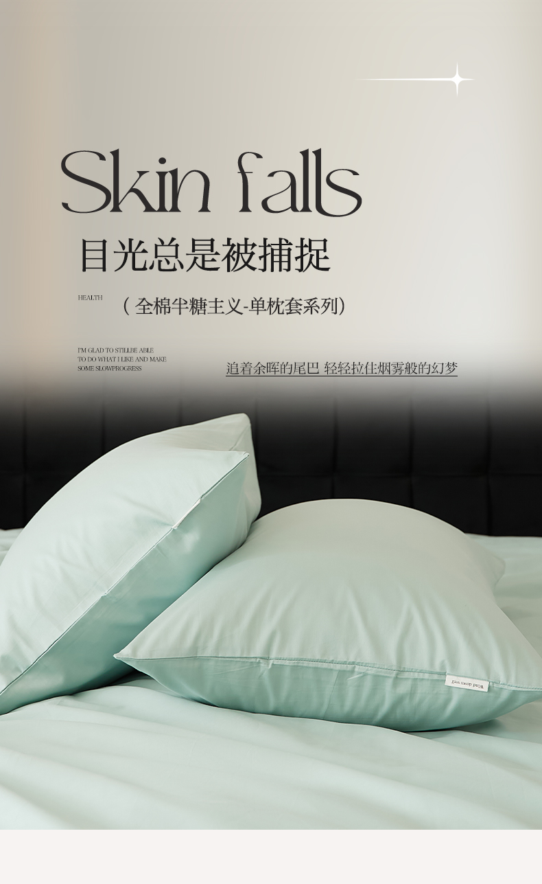 商品名称:EH家居 2025全棉半糖主义-单品系列-枕套 半糖-浅葱绿