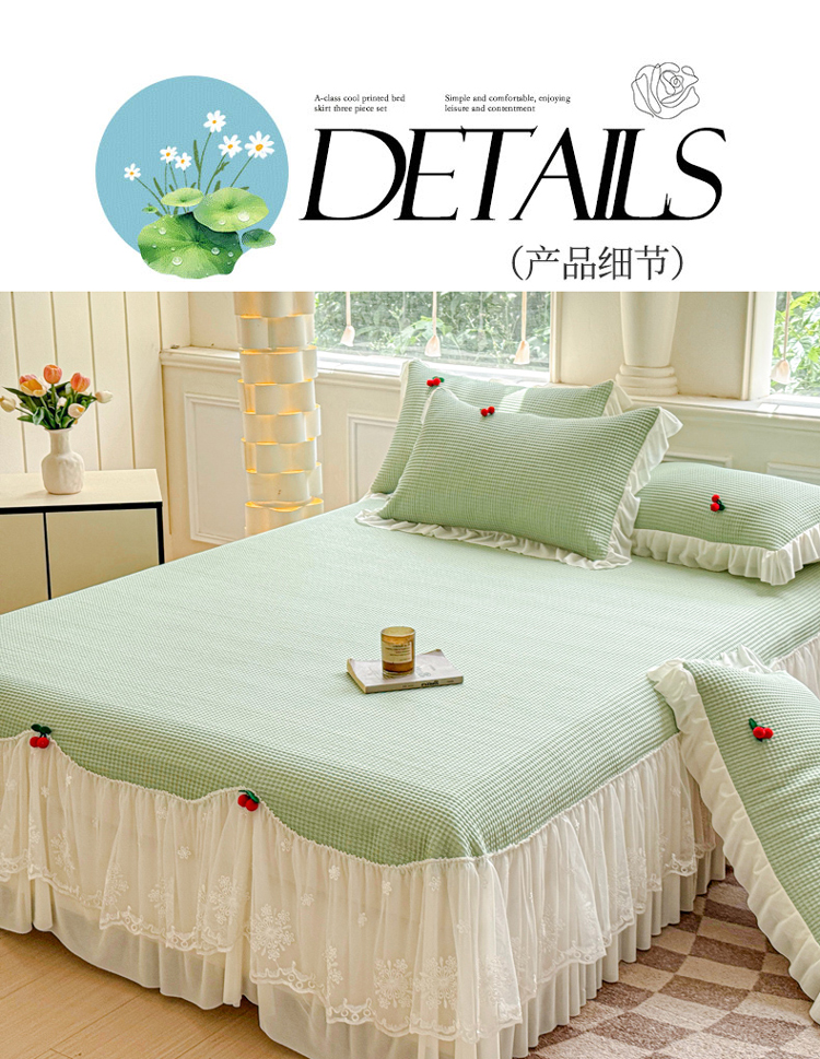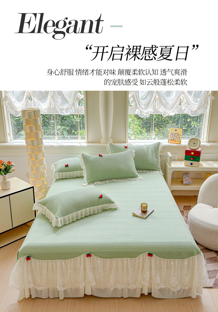(总)漫布云2025新款A类甄选PE凉感丝花边床裙款冰豆豆凉席床盖三件套春夏韩版公主风水洗棉蕾丝夏被,梦幻—薄荷绿 ,梦幻—梦幻蓝 ,梦幻—香芋紫 ,梦幻—樱花粉