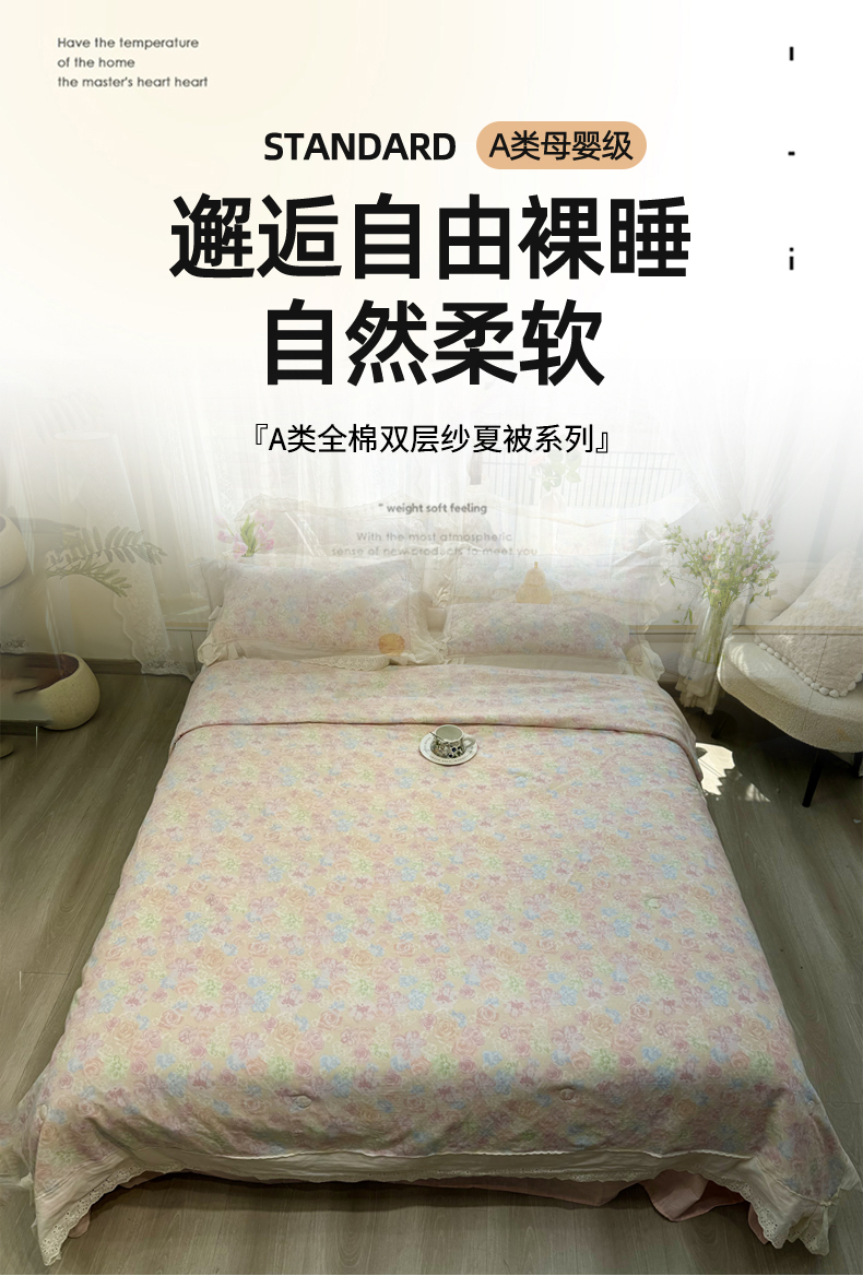 商品名称:(总)眠博士2025新款双层纱印花花边夏被花卉系列