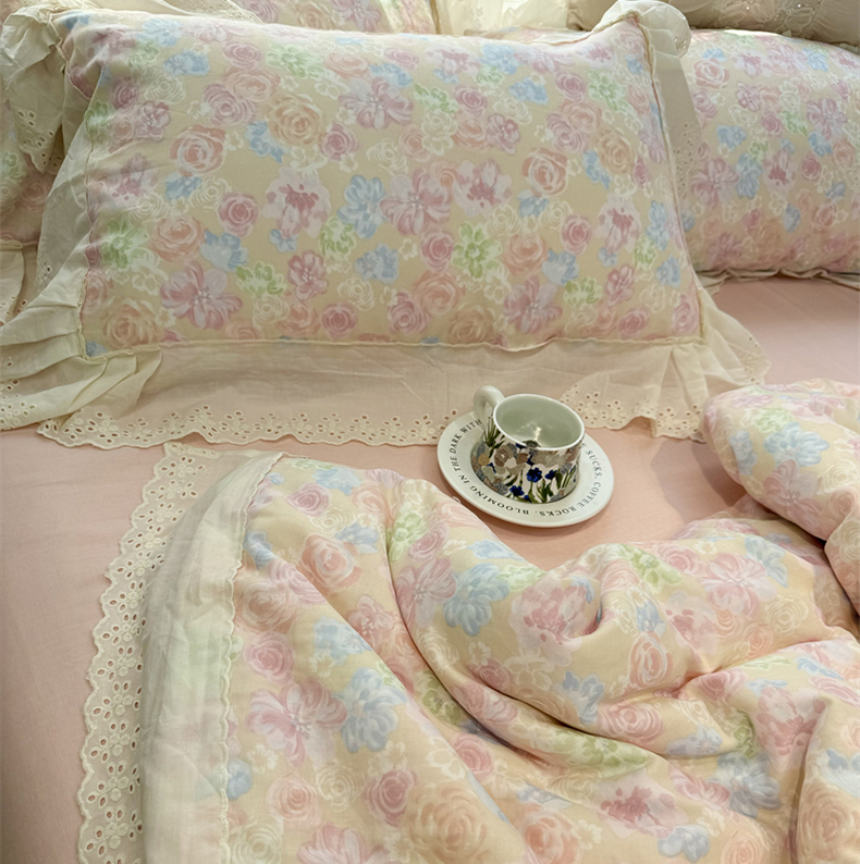 (总)眠博士2025新款双层纱印花花边夏被花卉系列
