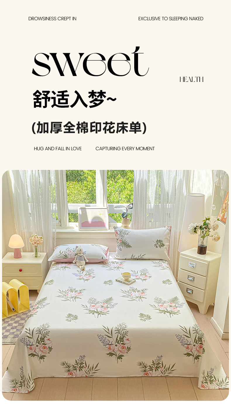 黑马家居 2025新款全棉纯棉印花单床单床单单件 艾莉花园