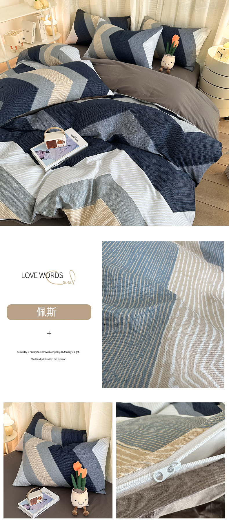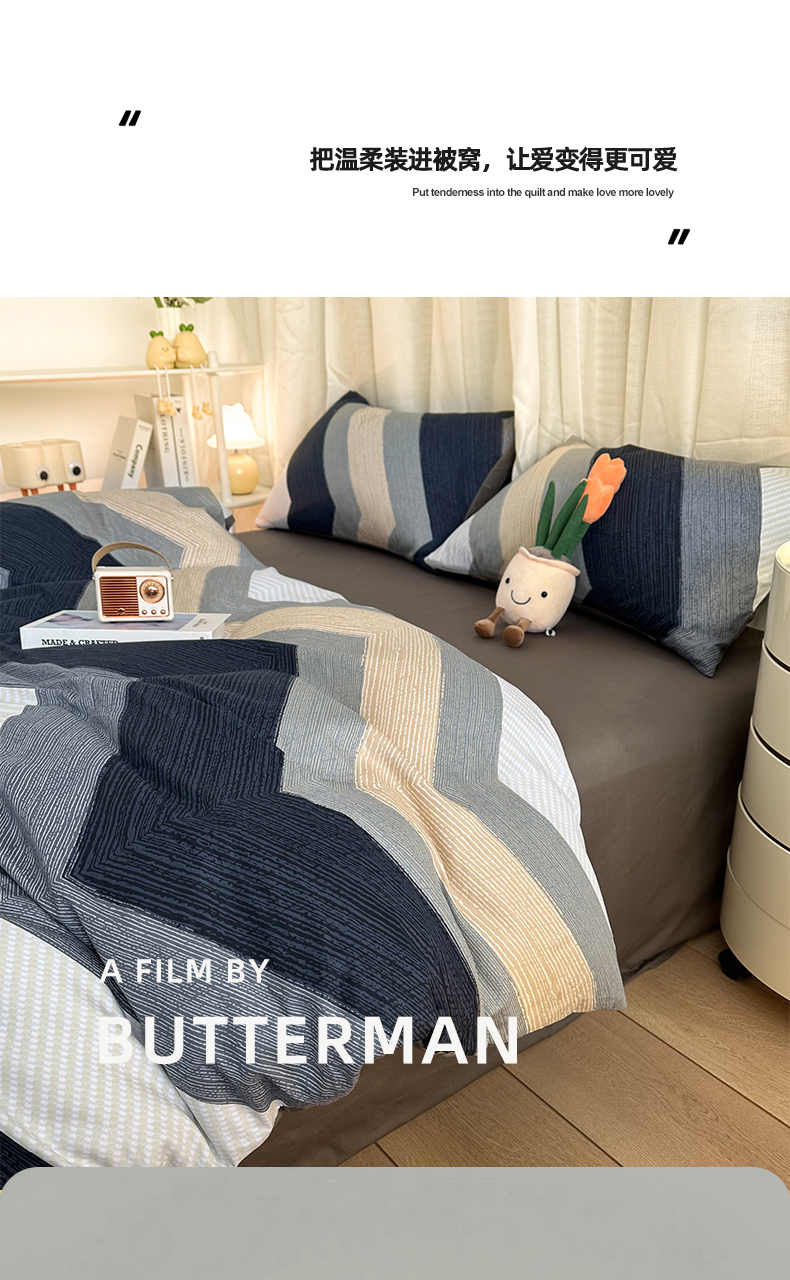 当前位置: 91家纺网 > 商品网购 > 床品套件 > 四件套 > 全棉普通四件套 > 简宜家居(朝初家纺) 2025新款13070全棉纯棉斜纹简约北欧风四件套 佩斯