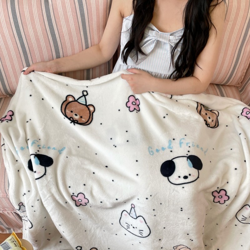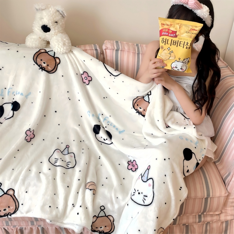 顾里家纺 2025新款ins少女奶油治愈双面牛奶绒毯 开心好友