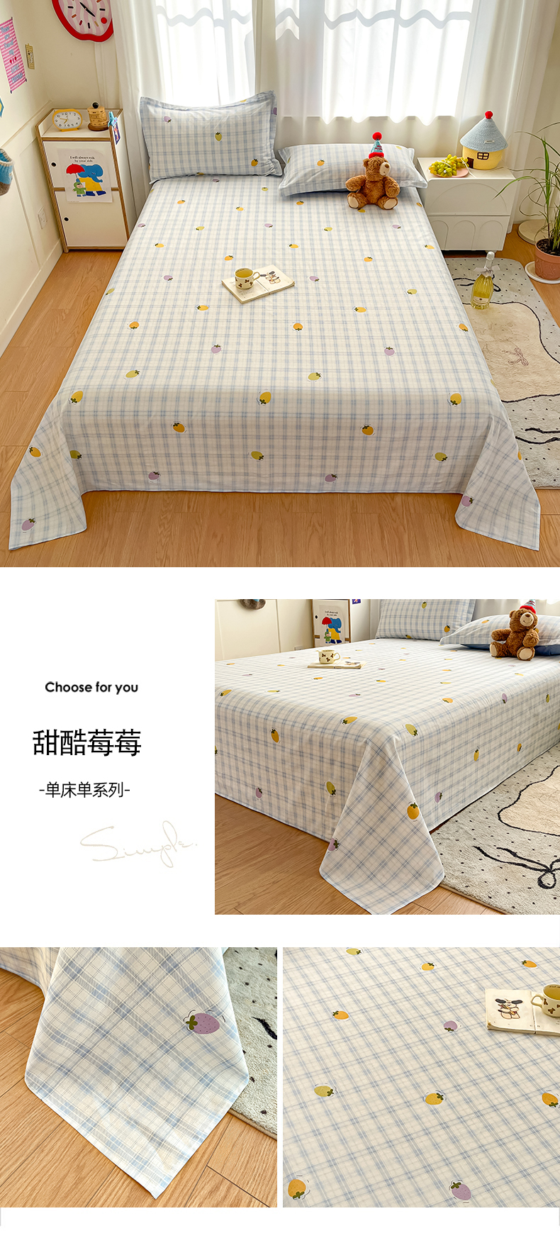 2025新款全棉印花小清新单品系列-单床单甜酷莓莓