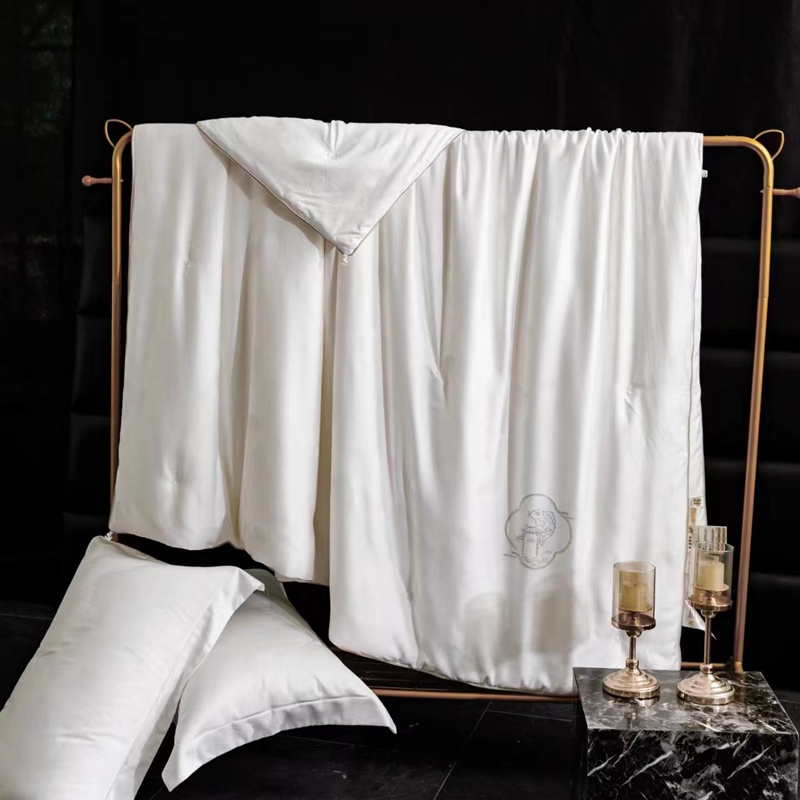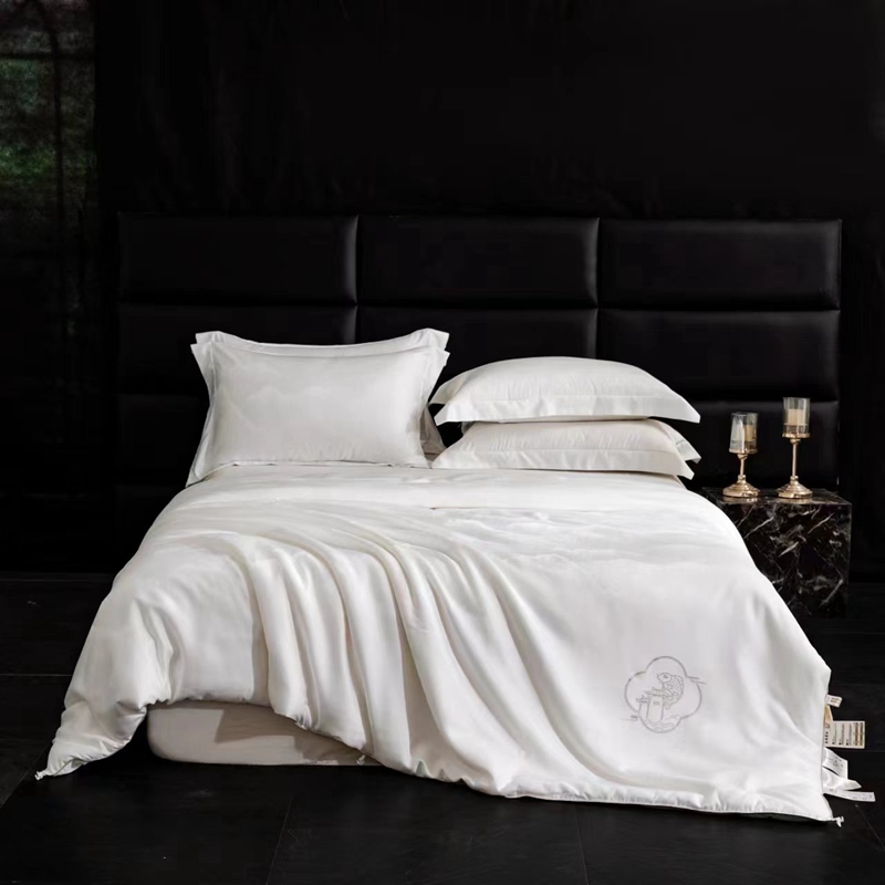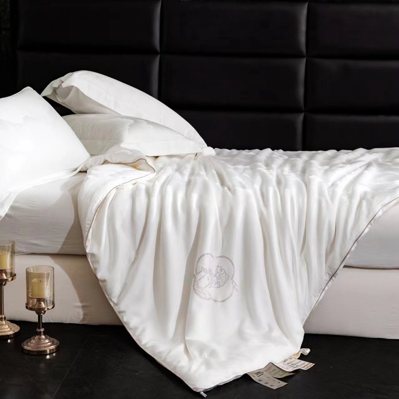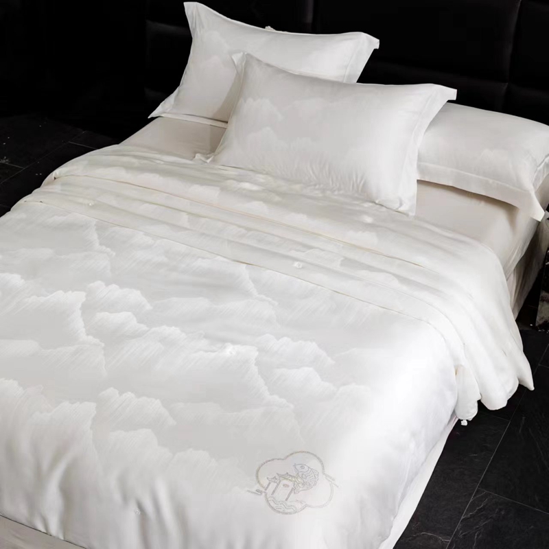 • 91家纺网 家纺一手货源 找家纺 俏企鹅羽绒精品馆 2025新款60S 大提花蚕丝夏被蚕丝被-锦鲤跃龙门 白