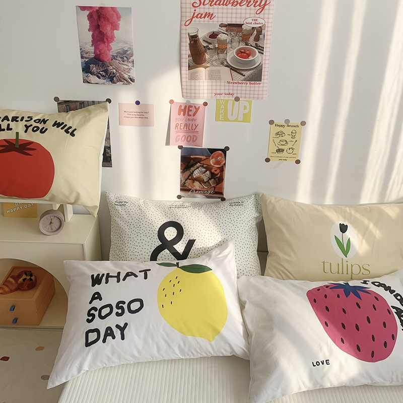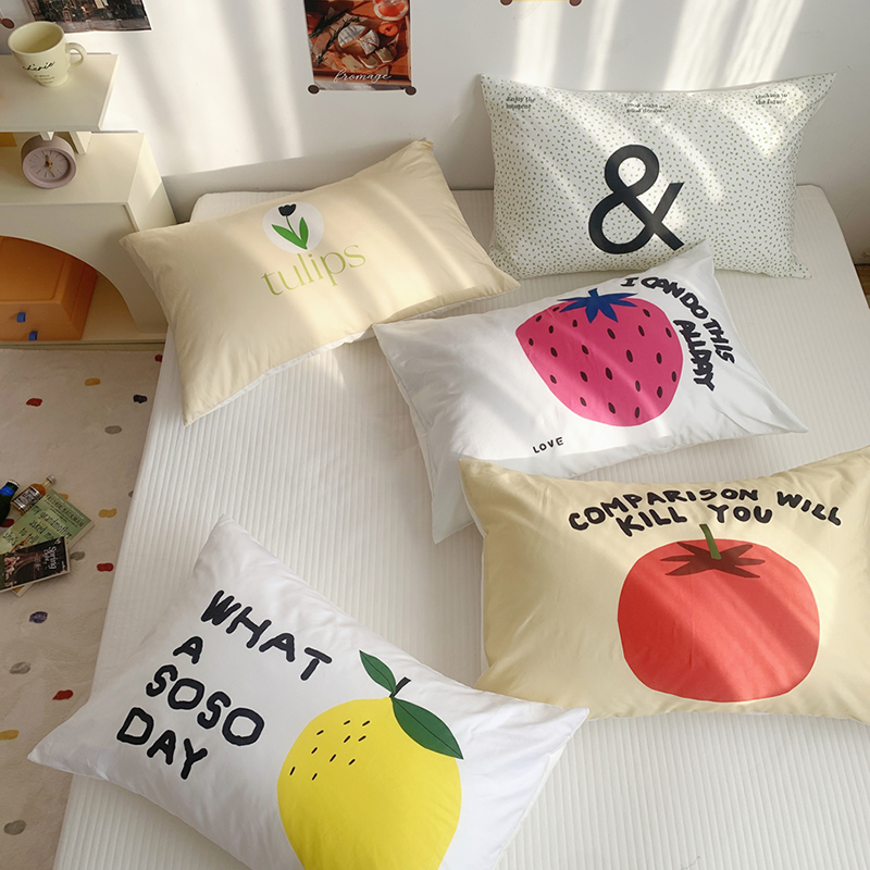 柚可家居 2024新款数码定版全棉单枕套系列-多巴胺系列二 柿子
