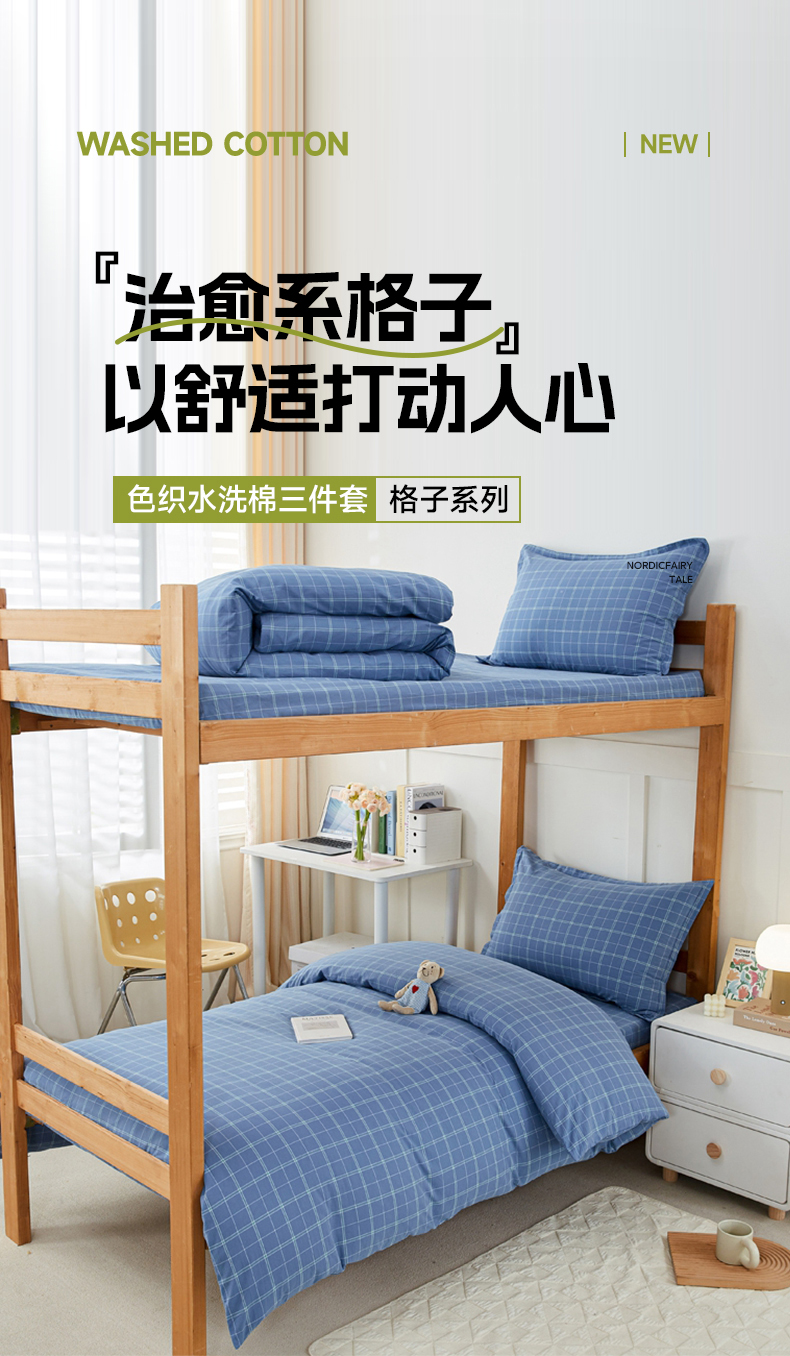 当前位置: 91家纺网 > 商品网购 > 床品套件 > 四件套 > 水洗棉四件套 > 锦润家纺 2025新款色织水洗棉三件套学生三件套全棉三件套大礼包