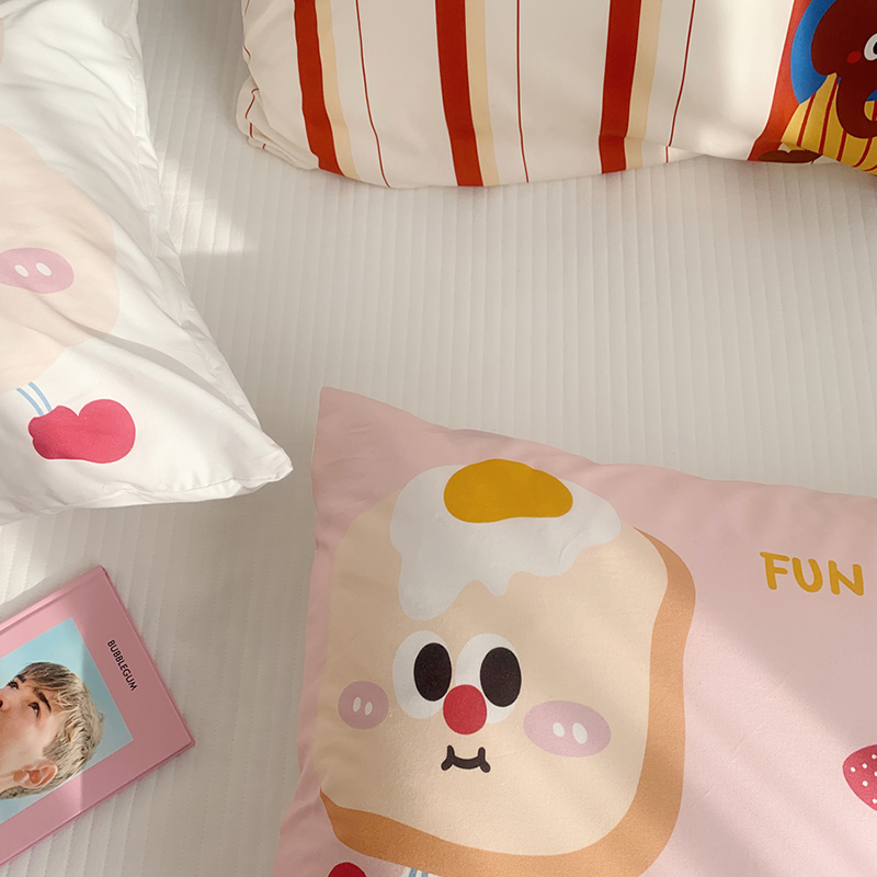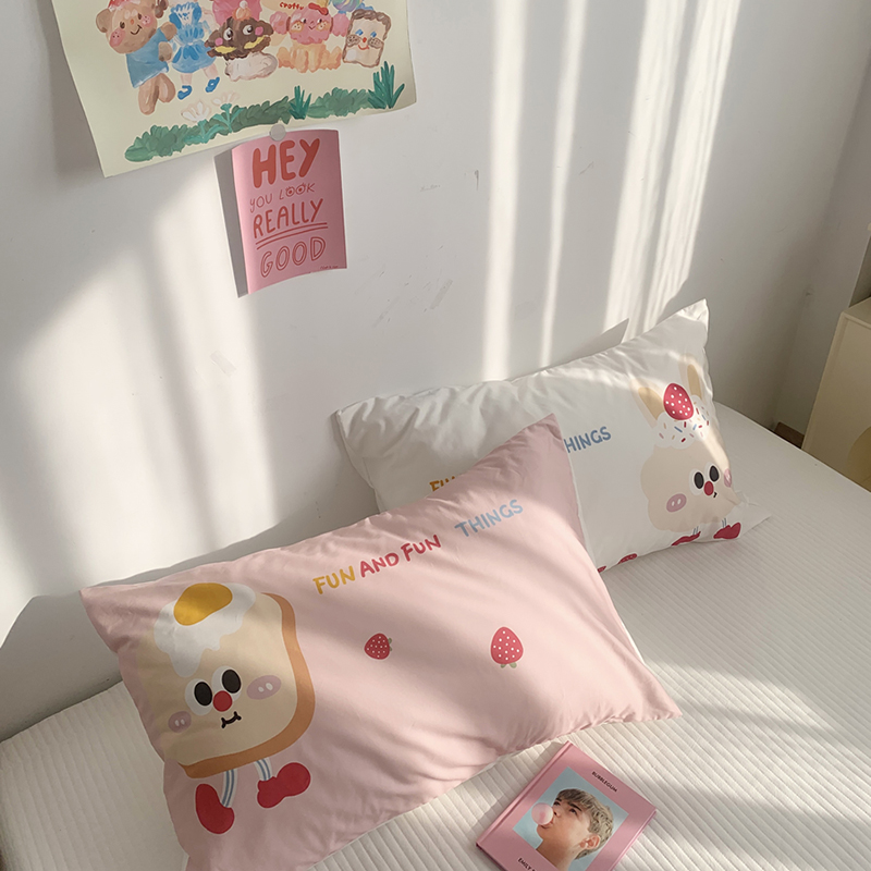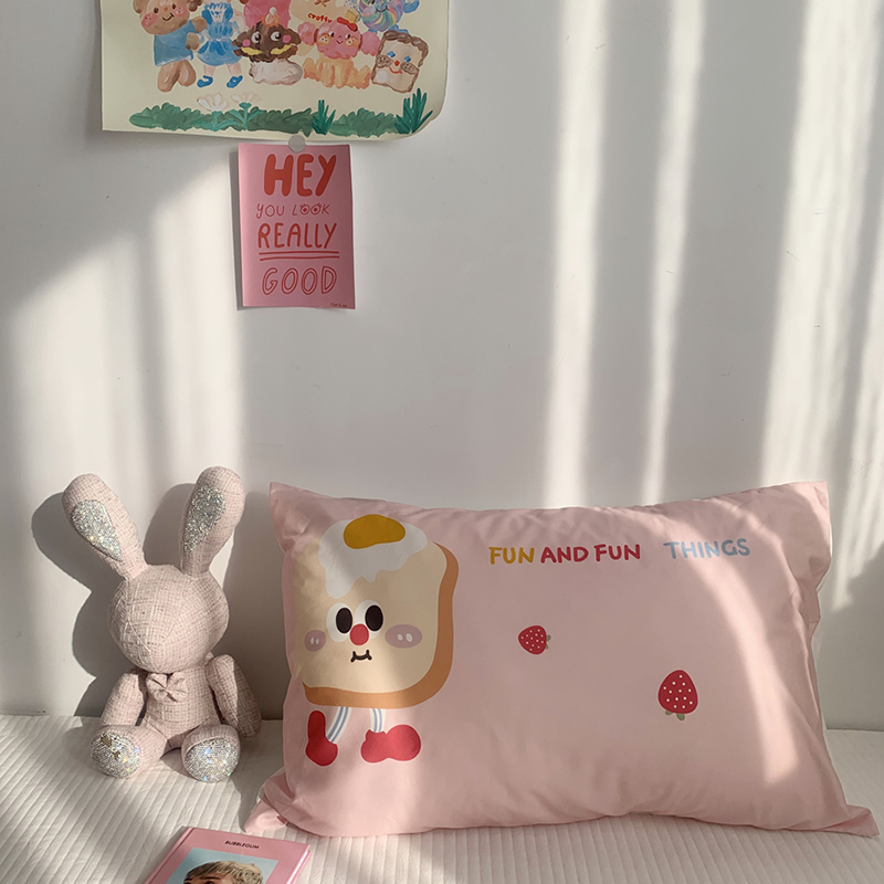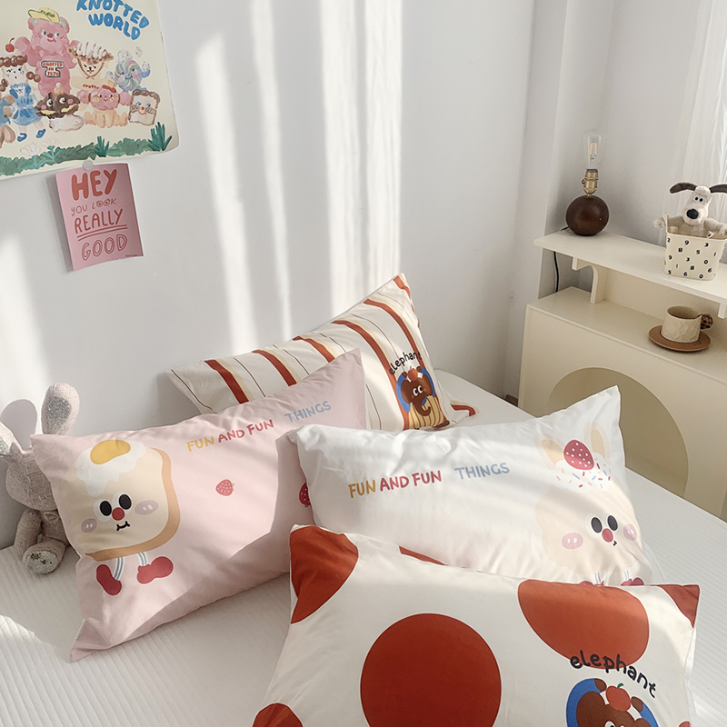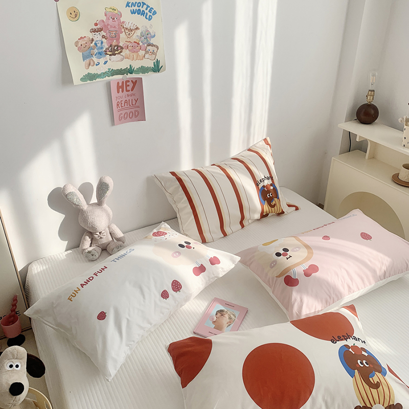 柚可家居 2024新款数码定版全棉单枕套系列-ele象+草莓吐司 波点ele象