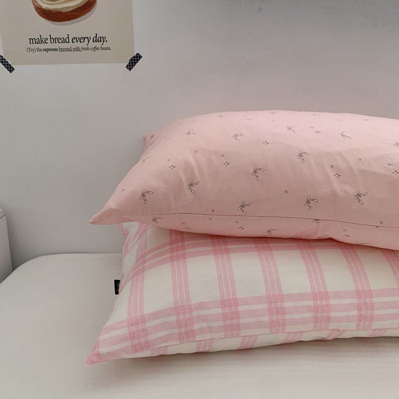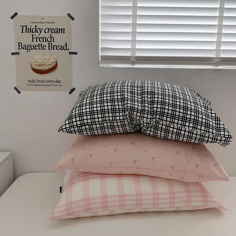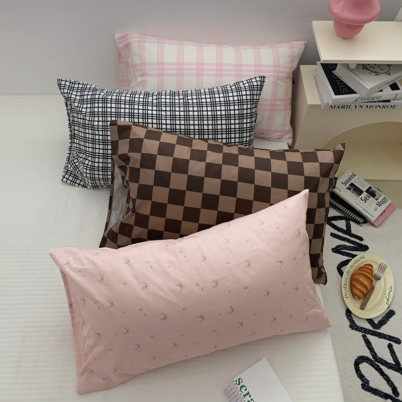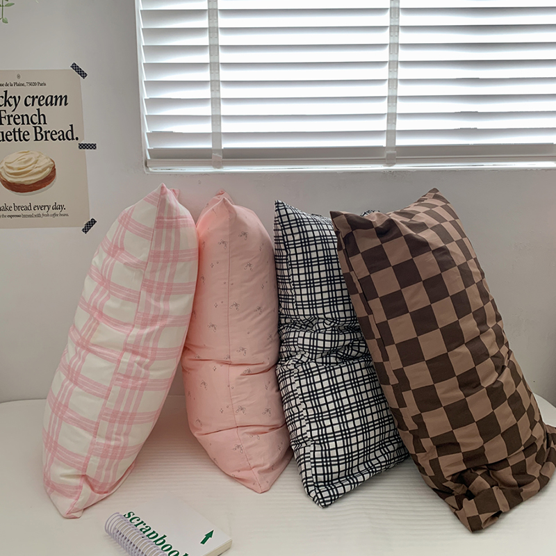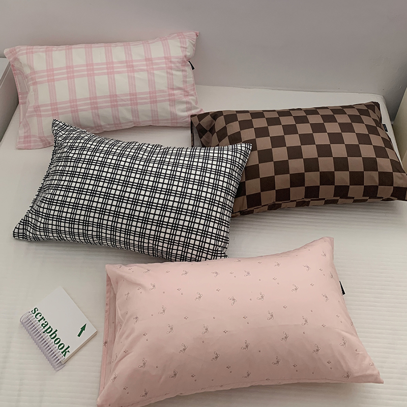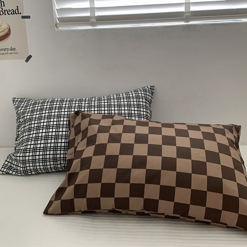 柚可家居 2024新款40支全棉活性印染格子纯棉单枕套 咖格单枕套