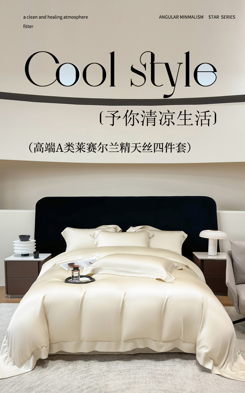 (总)【兰精公司授权】星蕴家纺 2025新款奥地利兰精天丝莱赛尔纯色埋绳款四件套-莱恩