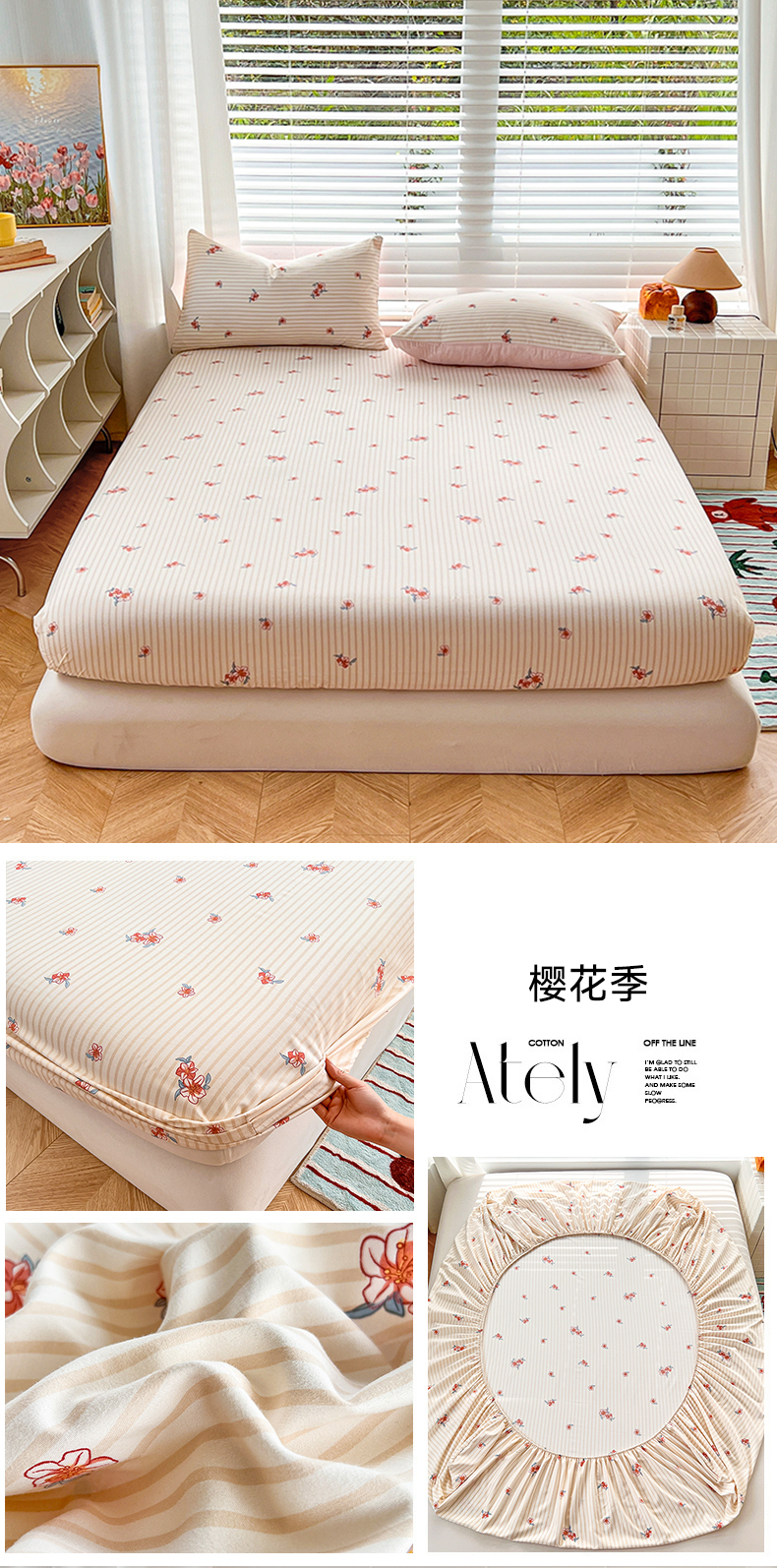 • 91家纺网 家纺一手货源 找家纺 赫然家纺 2026新款亲肤舒适活性印染水洗棉床笠系列床笠三件套(床笠+枕套) 樱花季