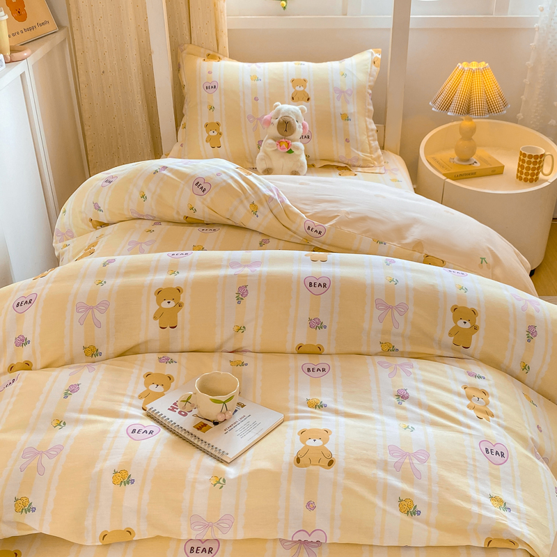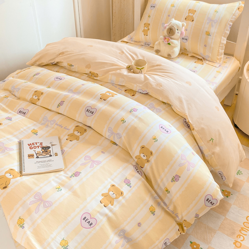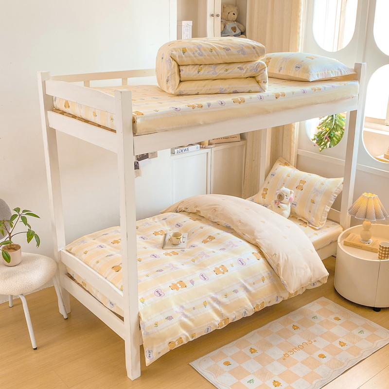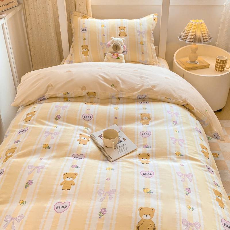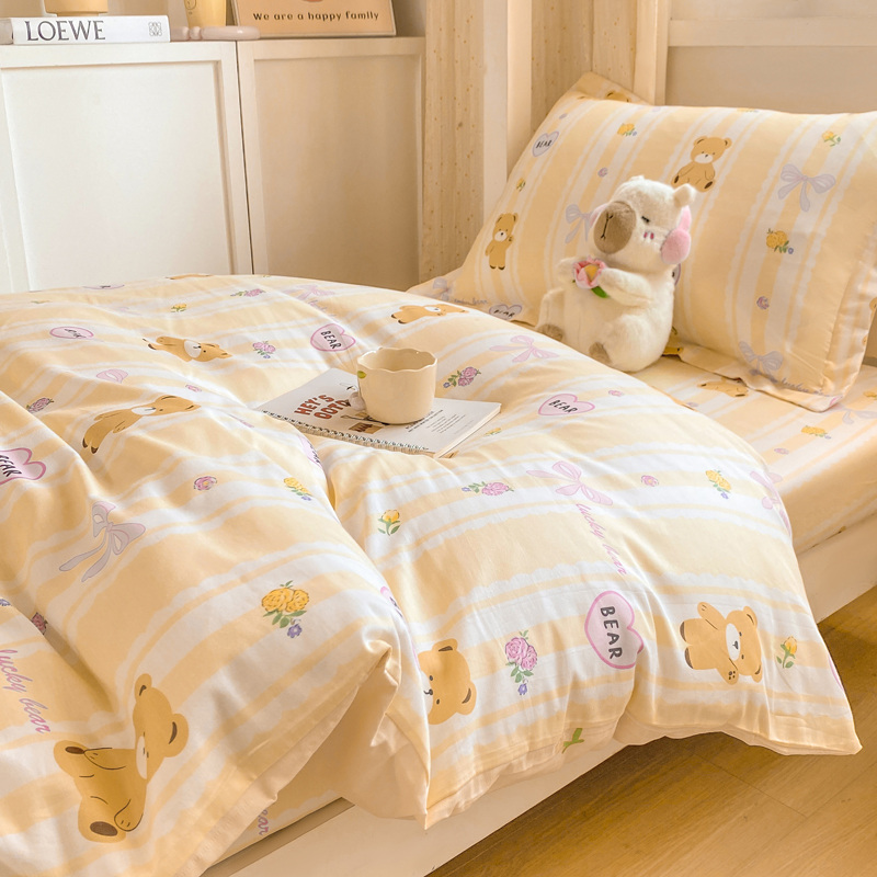 朵安2025新款全棉印花学生三件套 奶油小熊