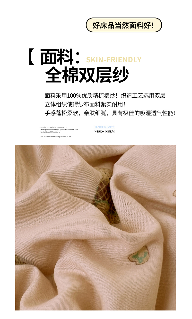 当前位置: 91家纺网 > 商品网购 > 床品套件 > 四件套 > 双层纱四件套 > DoDo 兜兜 2025新款全棉纯棉小温暖双层纱四件套【可定做尺寸】 可可熊