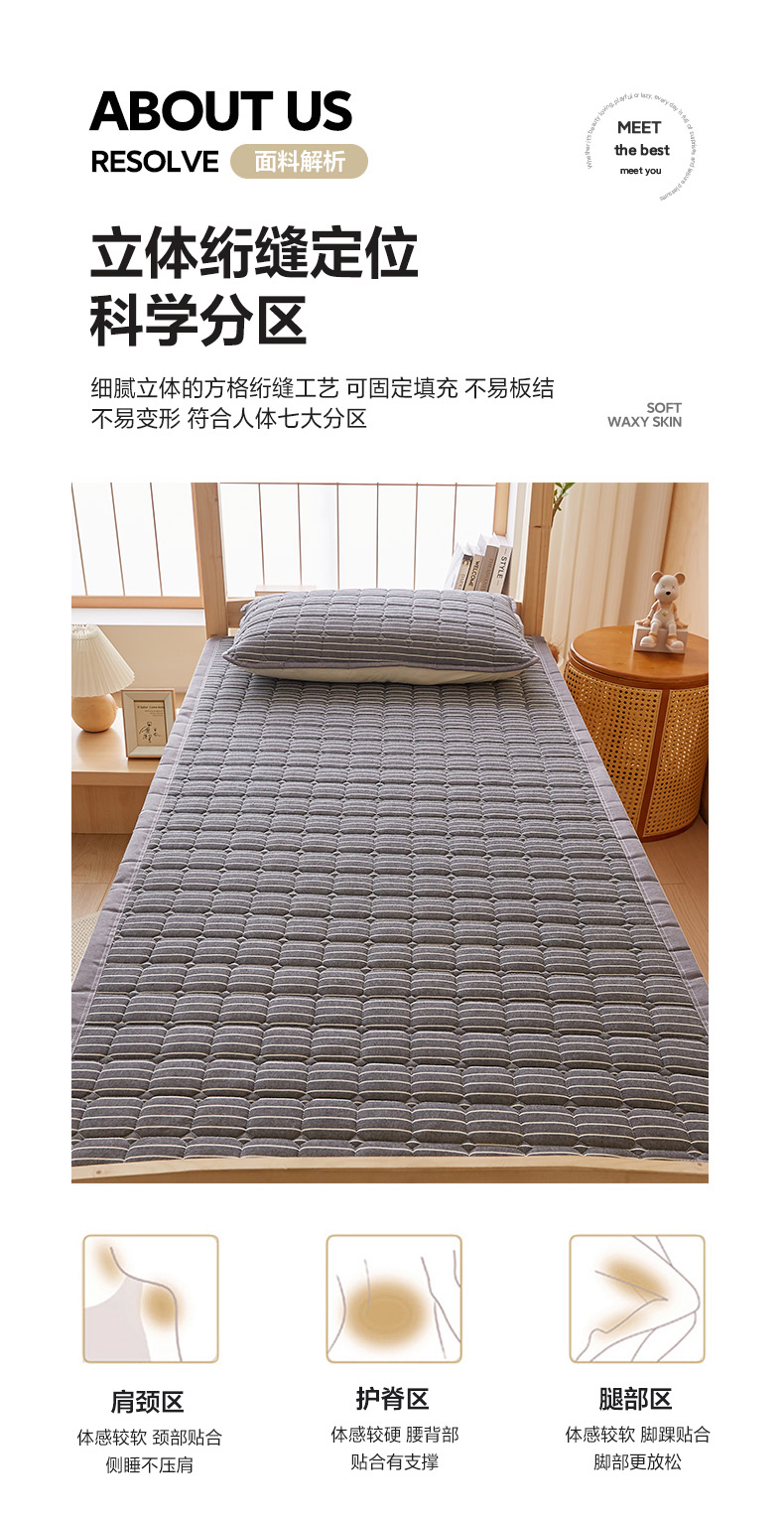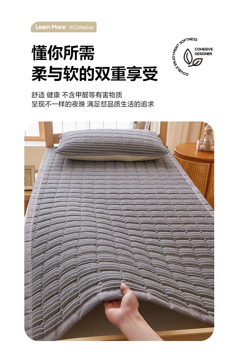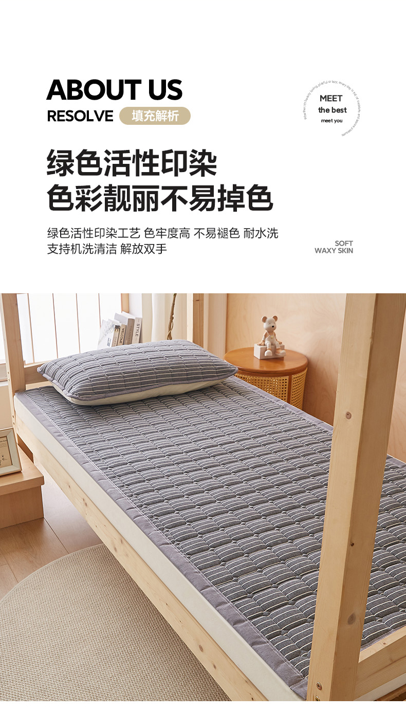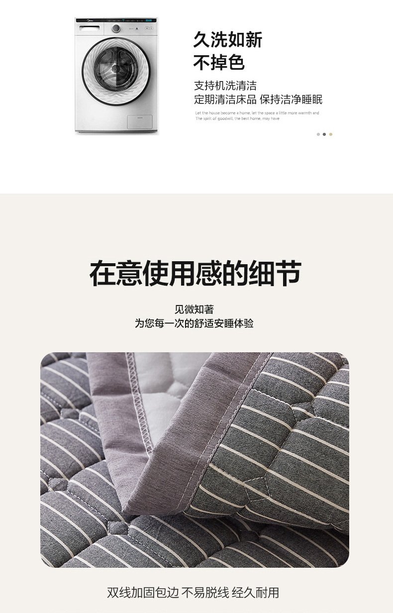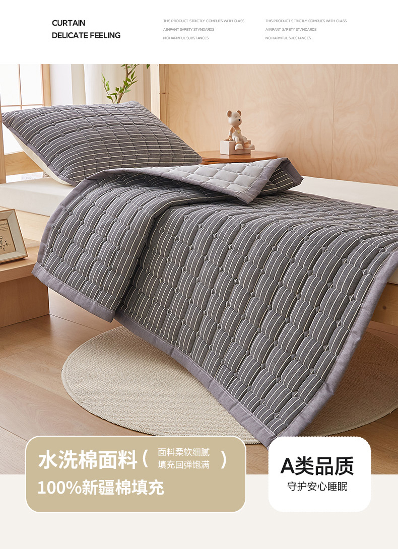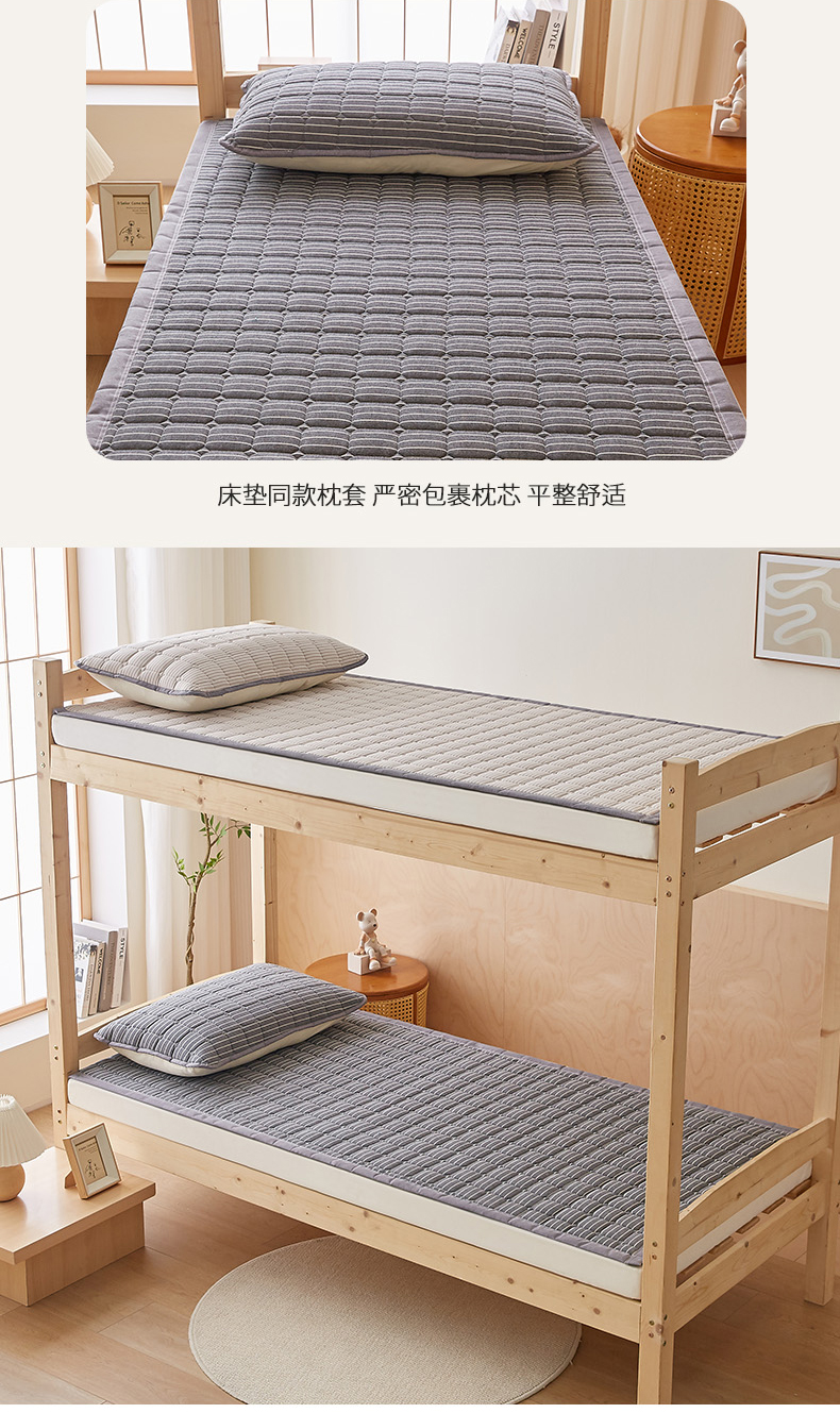 • 91家纺网 家纺一手货源 找家纺 暖季家纺 2025新款A类水洗棉学生絮叠床护垫 絮叠床护垫-灰细条