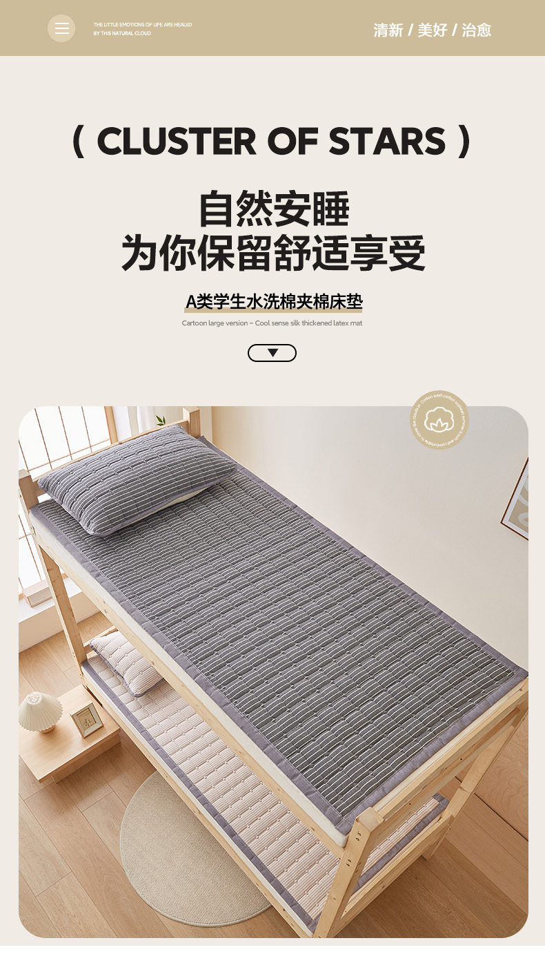 当前位置: 91家纺网 > 商品网购 > 床垫/床褥 > 暖季家纺 2025新款A类水洗棉学生絮叠床护垫 絮叠床护垫-灰细条