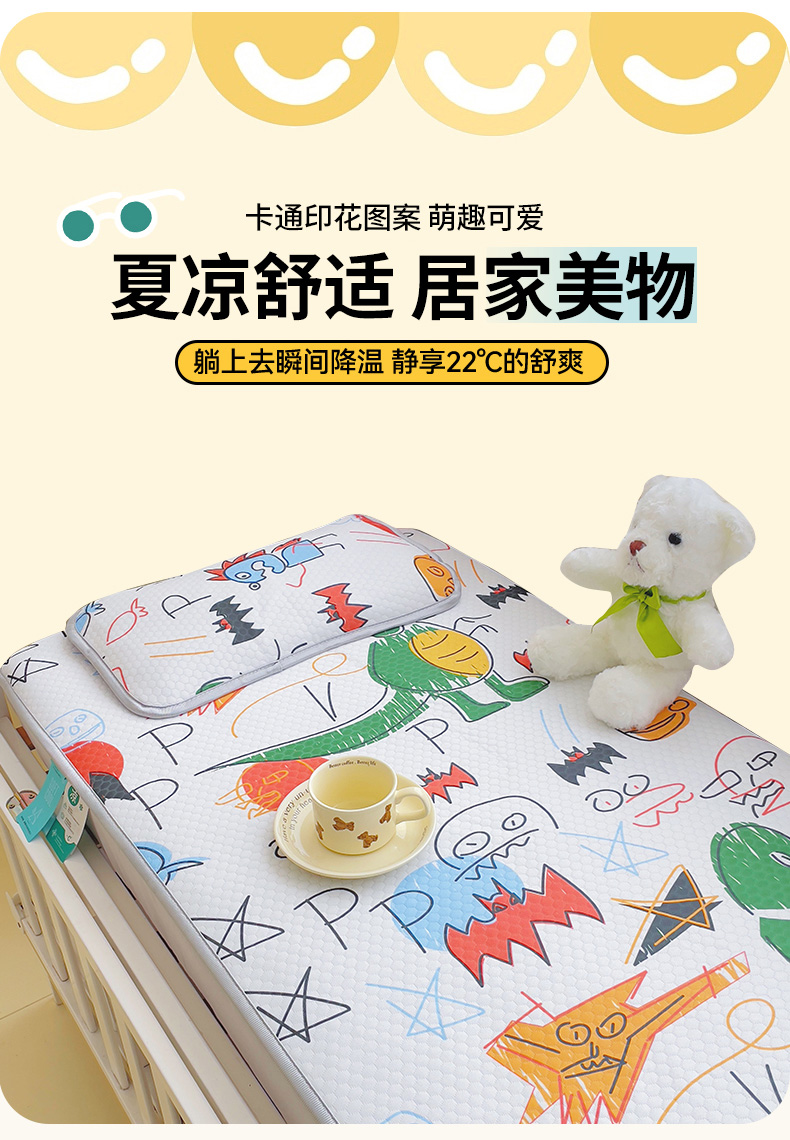 当前位置: 91家纺网 > 商品网购 > 床上用品 > 凉席 > 小叮当家纺仓储工厂店 (提供买家秀 爆款花型 不断货)2025新款冰豆豆儿童卡通凉席床笠 恐龙