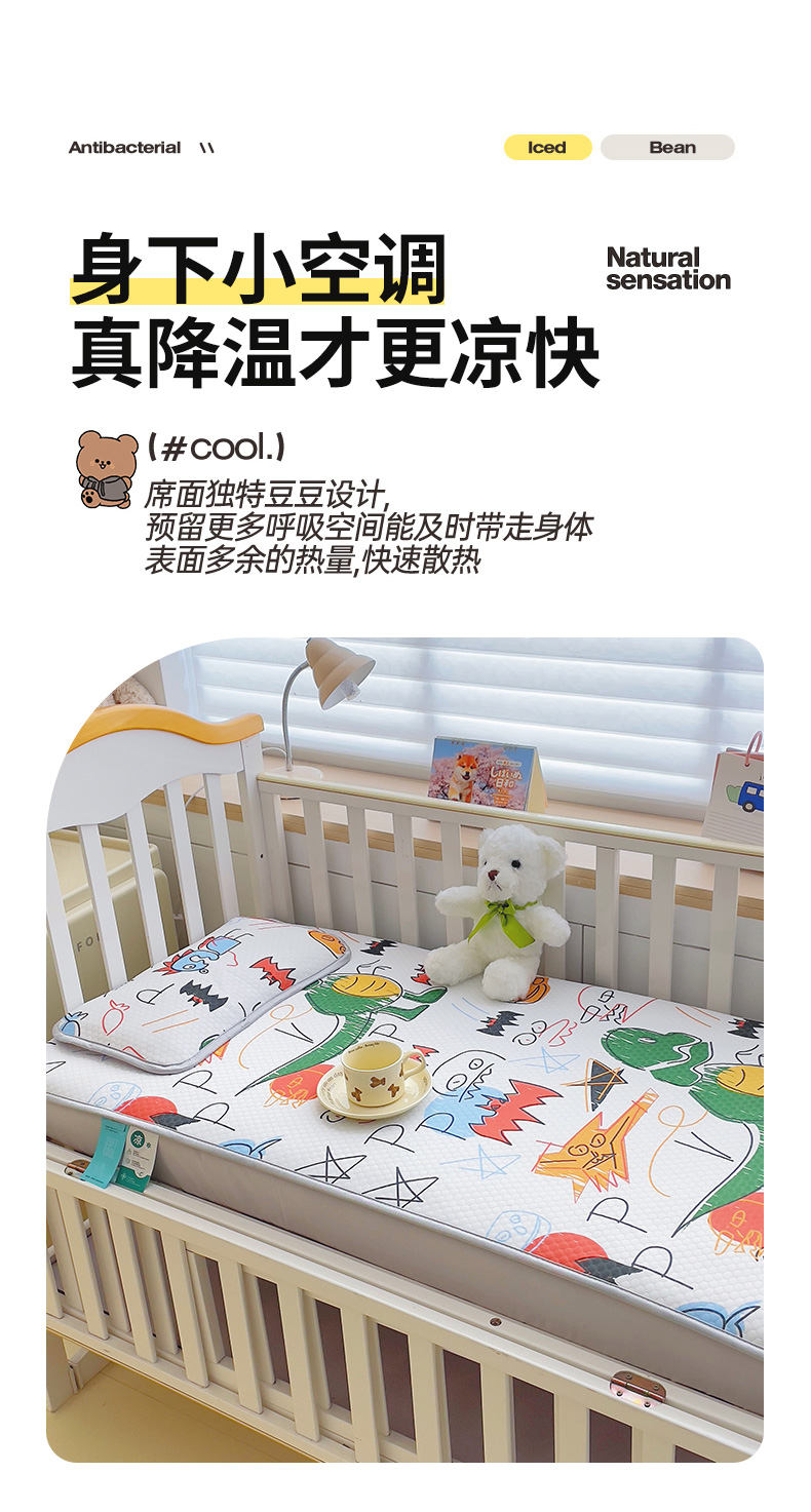 小叮当家纺仓储工厂店 (提供买家秀 爆款花型 不断货)2025新款冰豆豆儿童卡通凉席床笠 恐龙