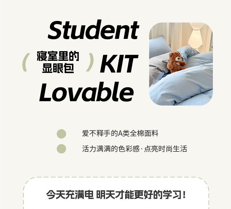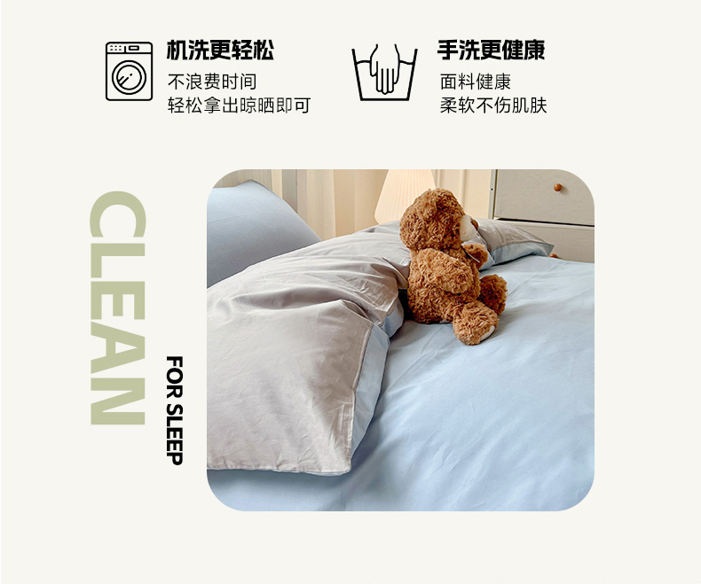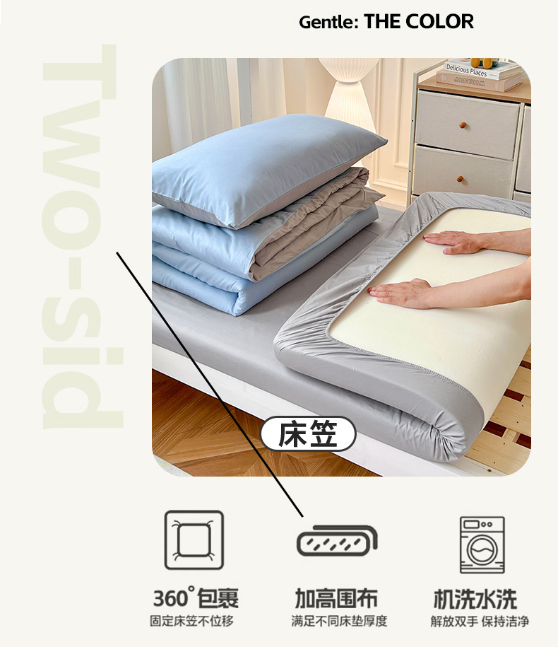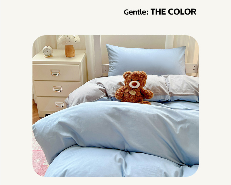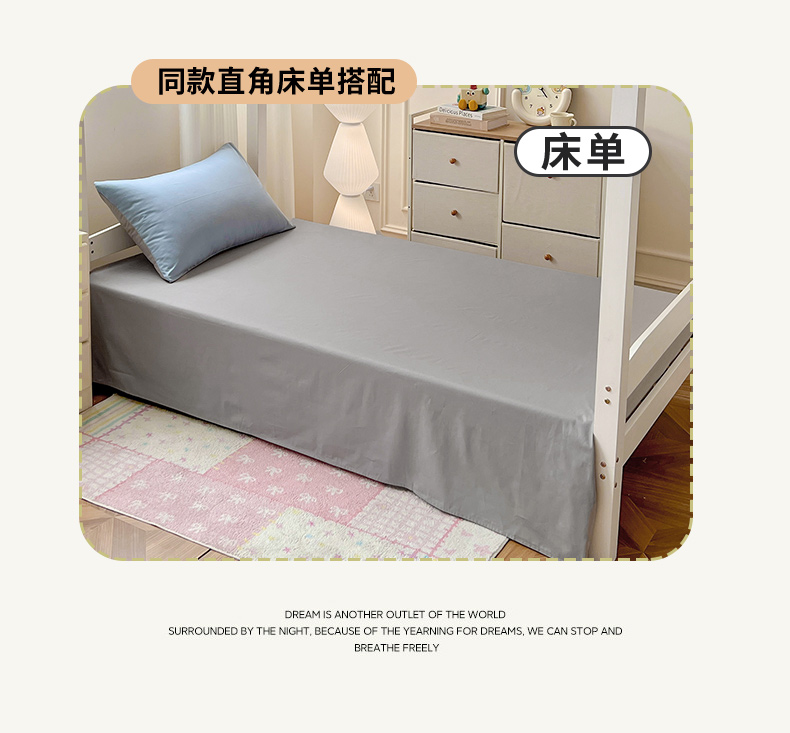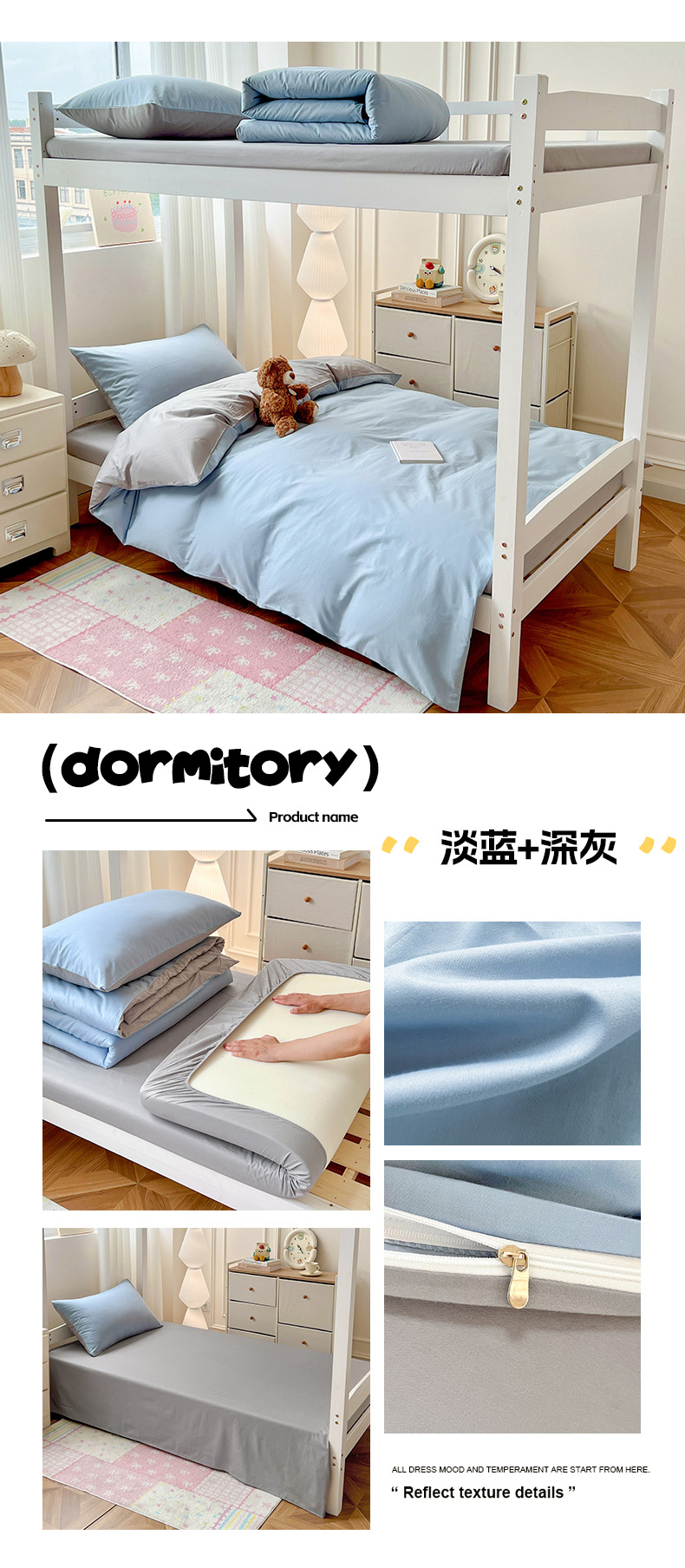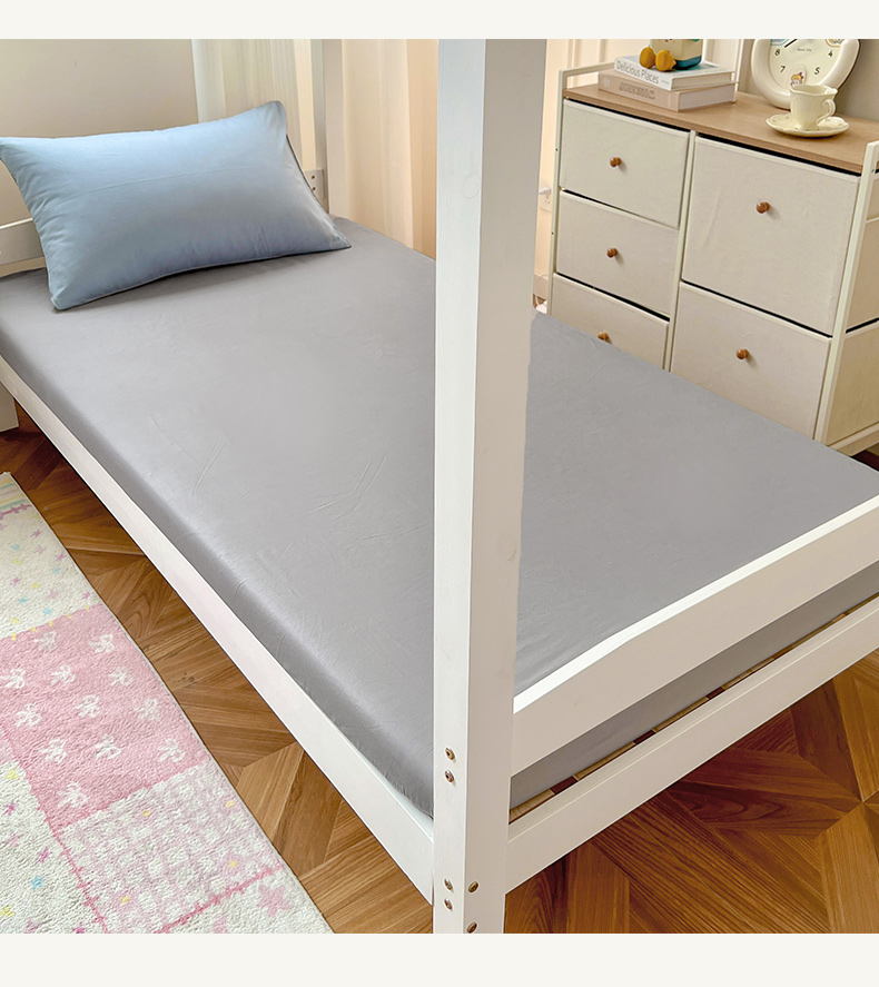 商品名称:泽西家纺 2025新款A类加密全棉40支13376简约风宿舍双拼纯色纯棉学生三件套 淡蓝+深灰