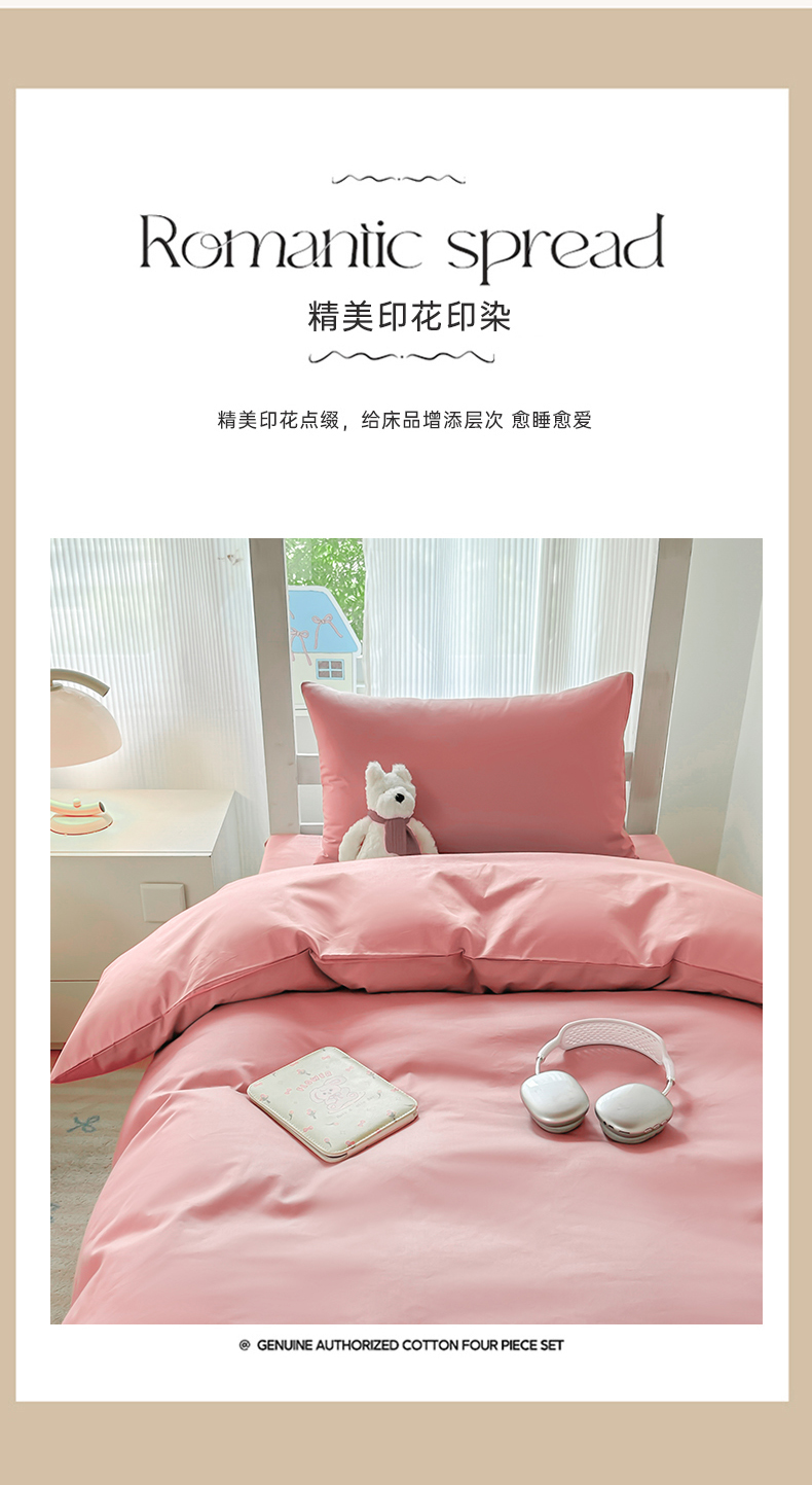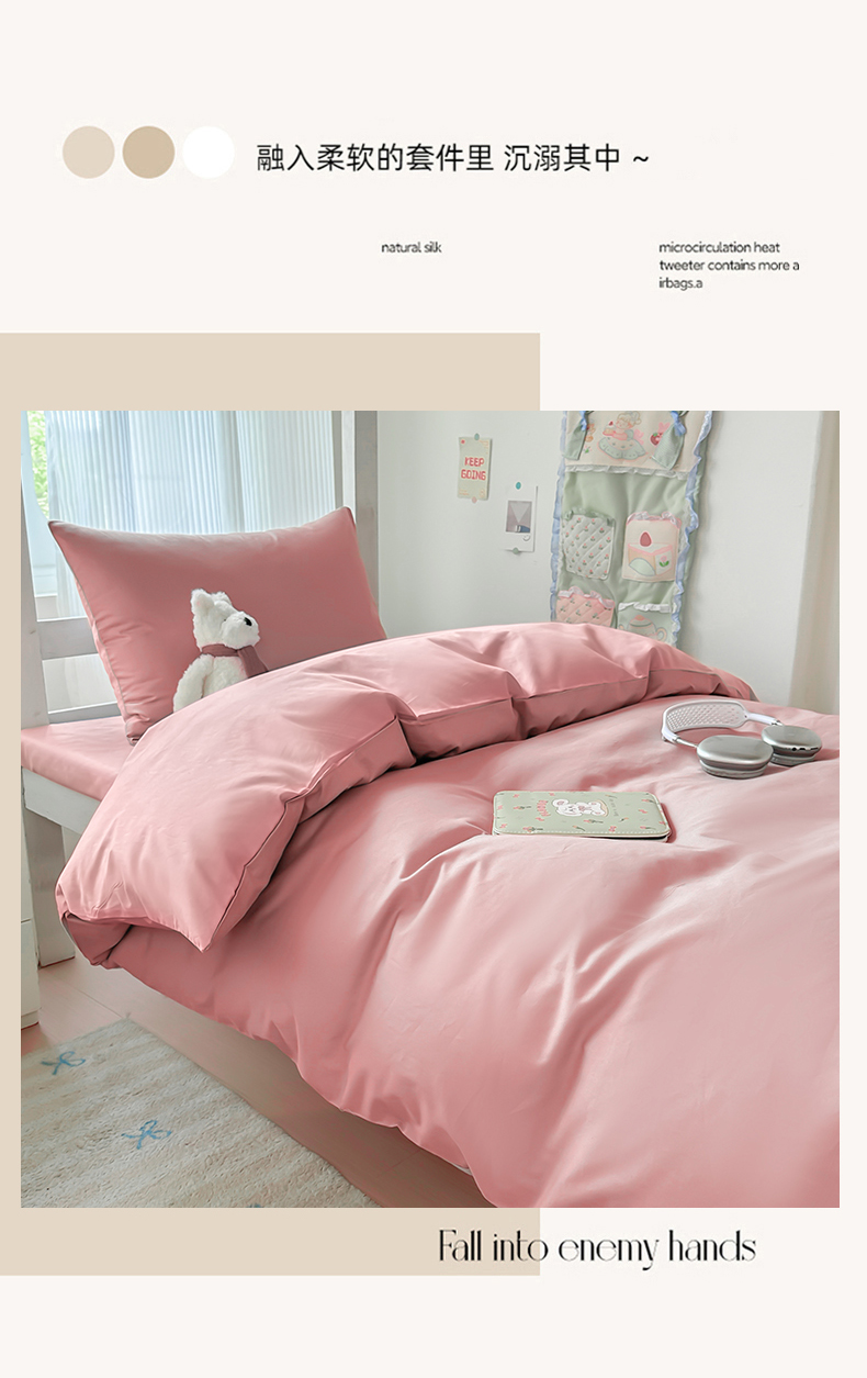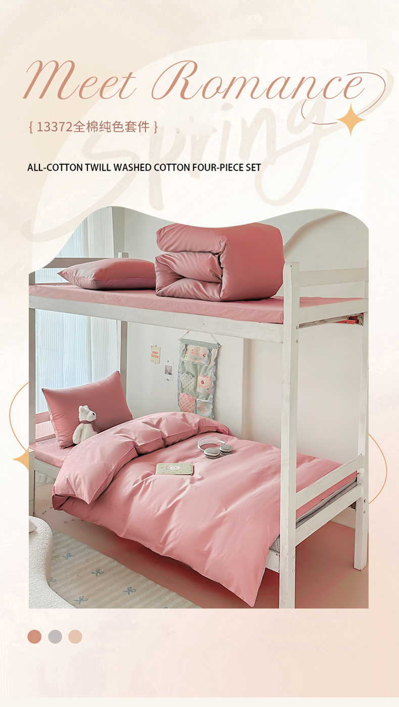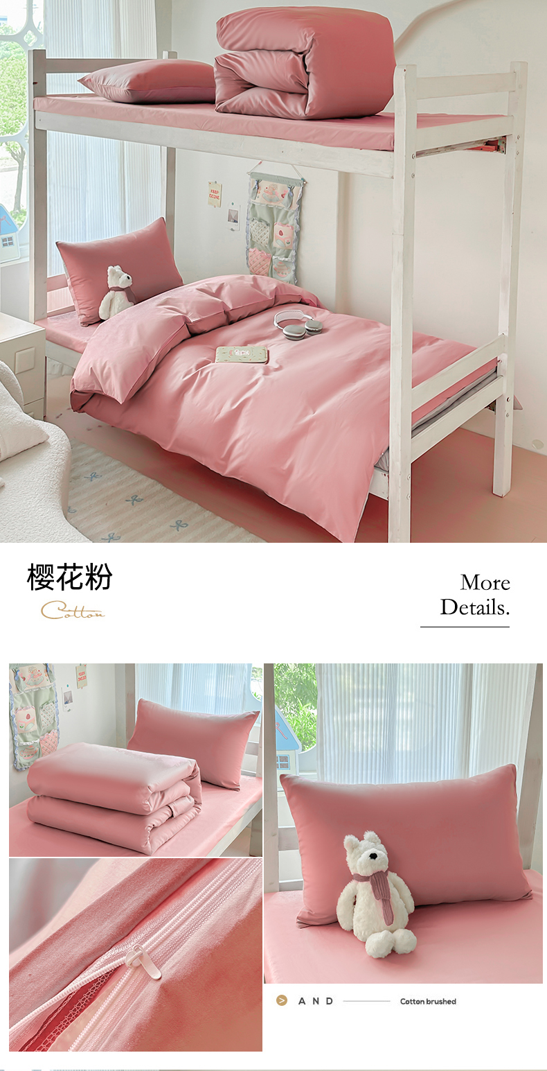 商品名称:简冠家纺 2025新款13372全棉纯色学生三件套 樱花粉