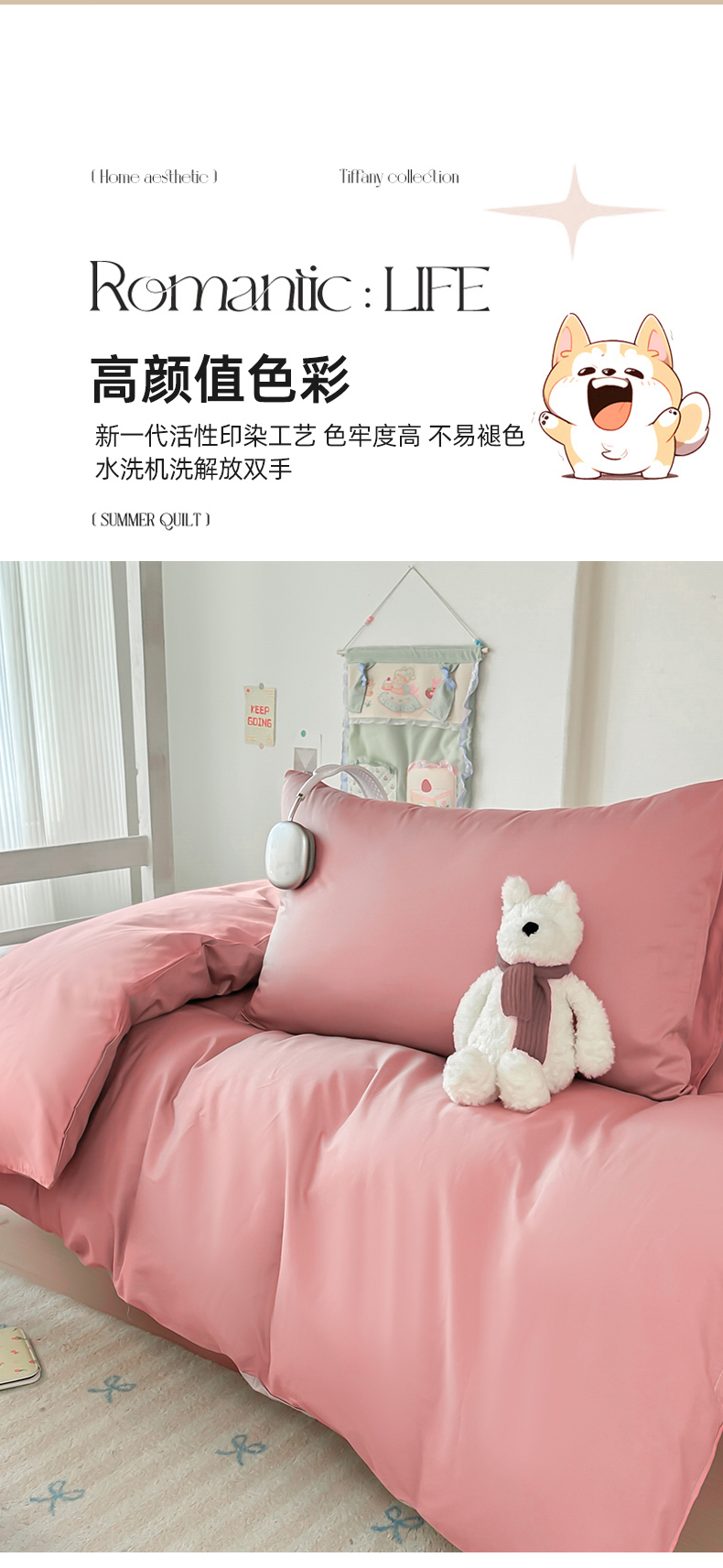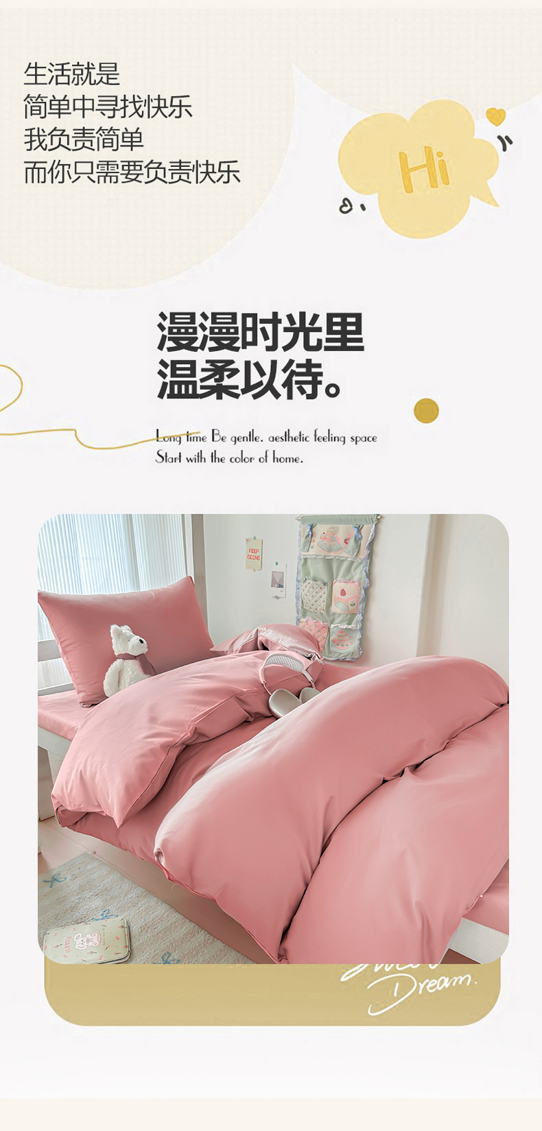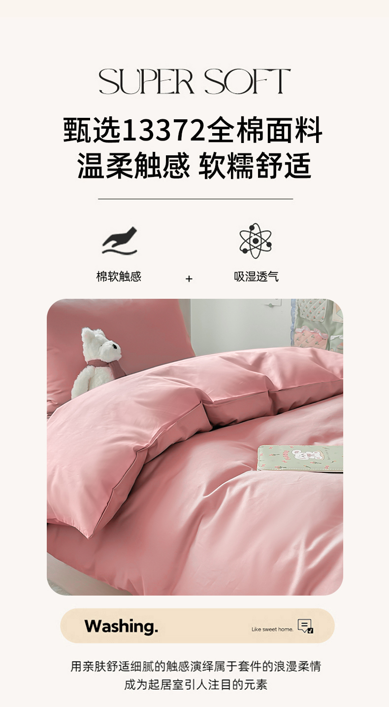 商品名称:简冠家纺 2025新款13372全棉纯色学生三件套 樱花粉
