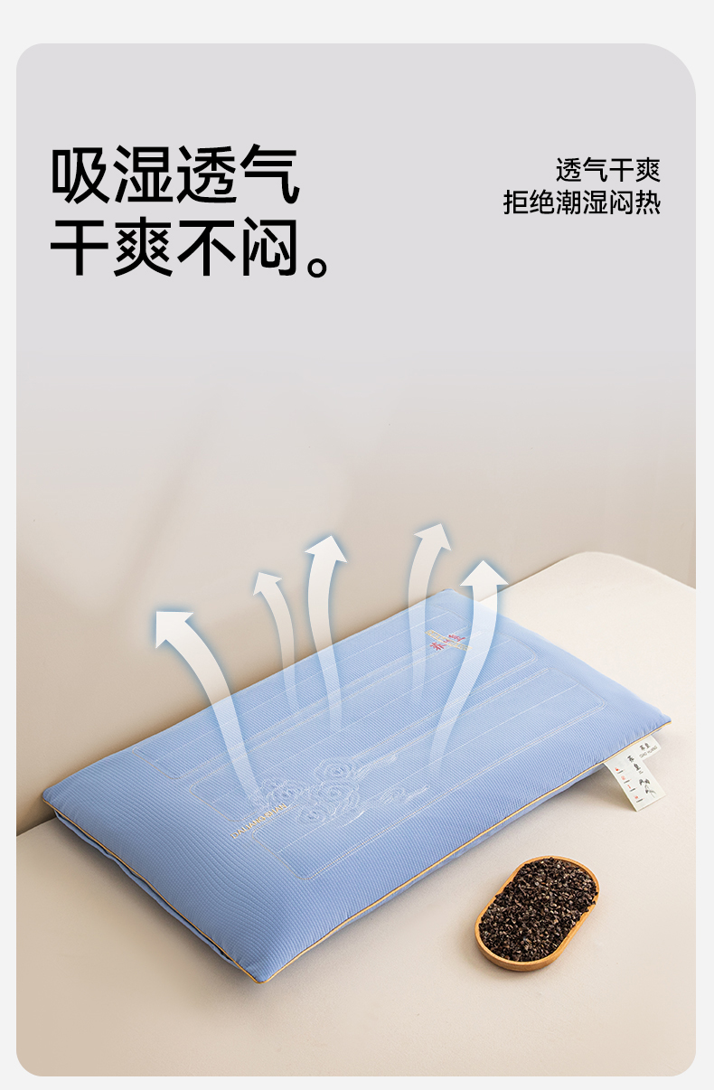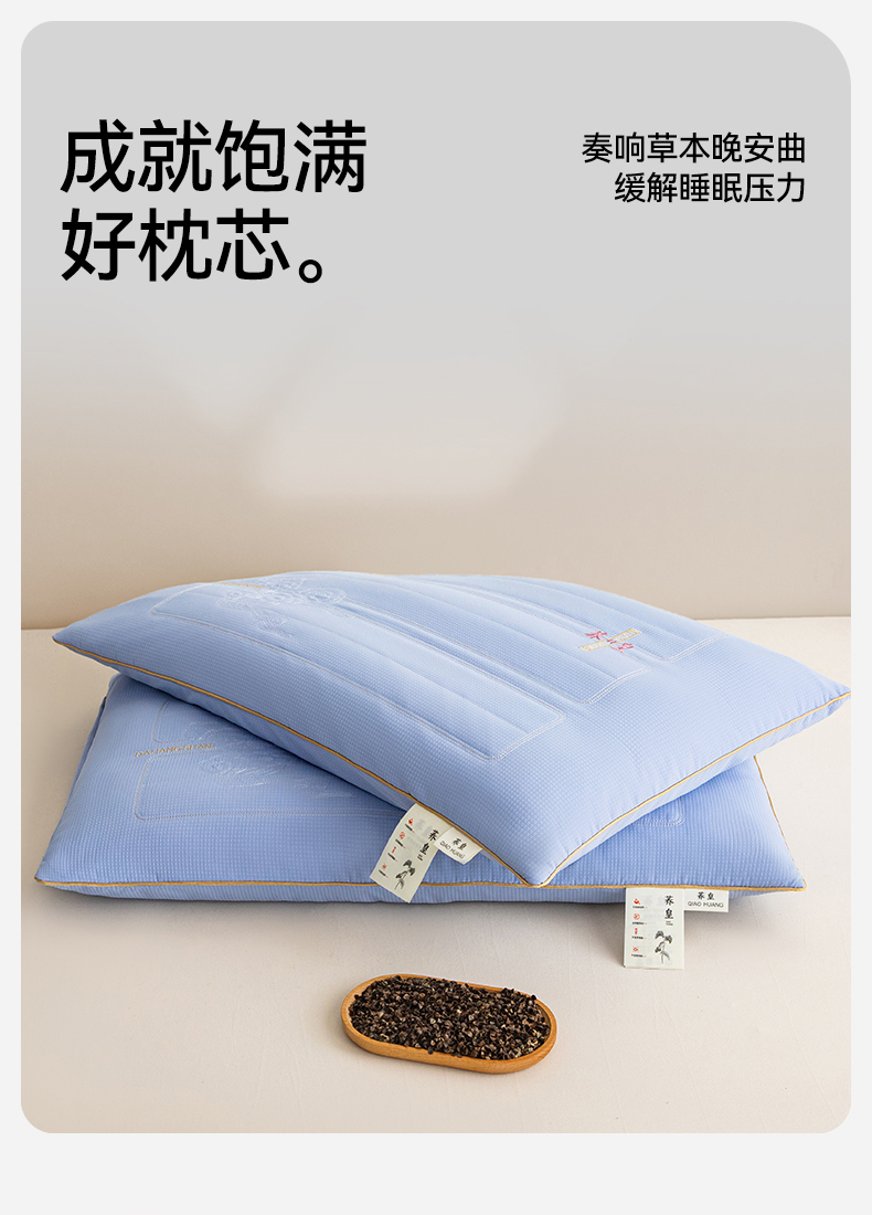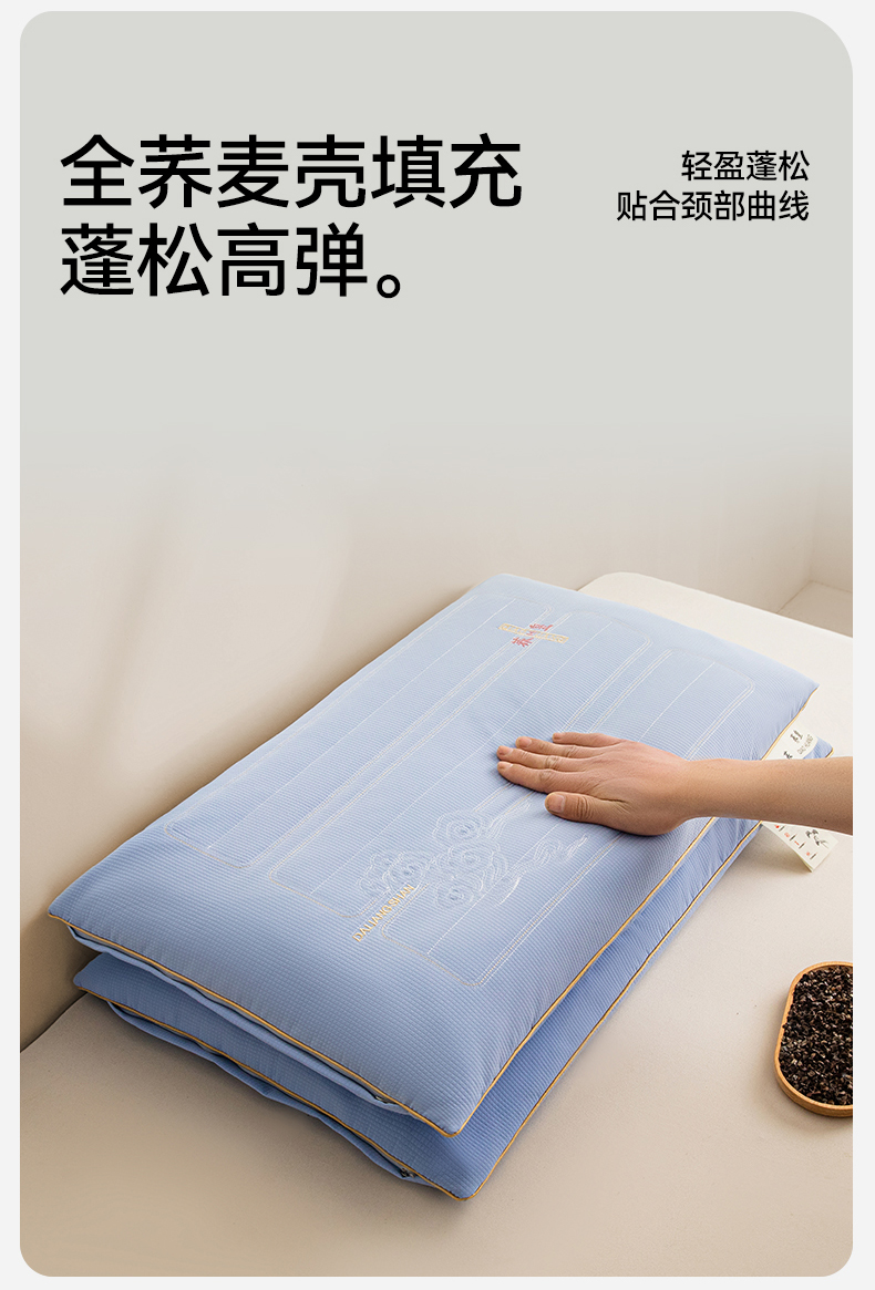 商品名称:圣之寐 2025新款荞皇纯荞麦枕 蓝色48*74