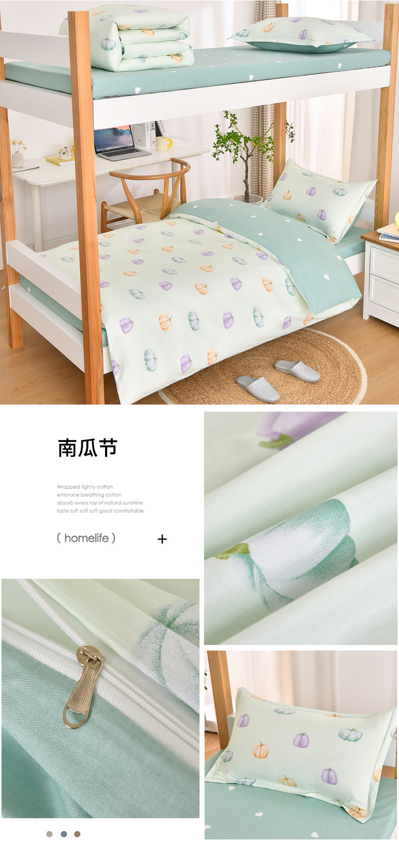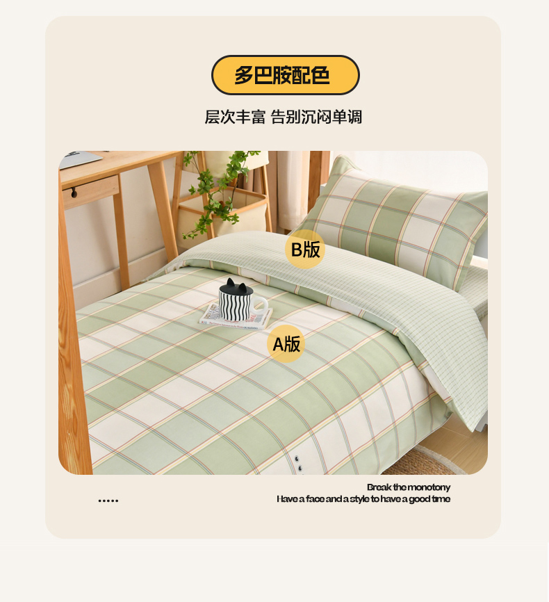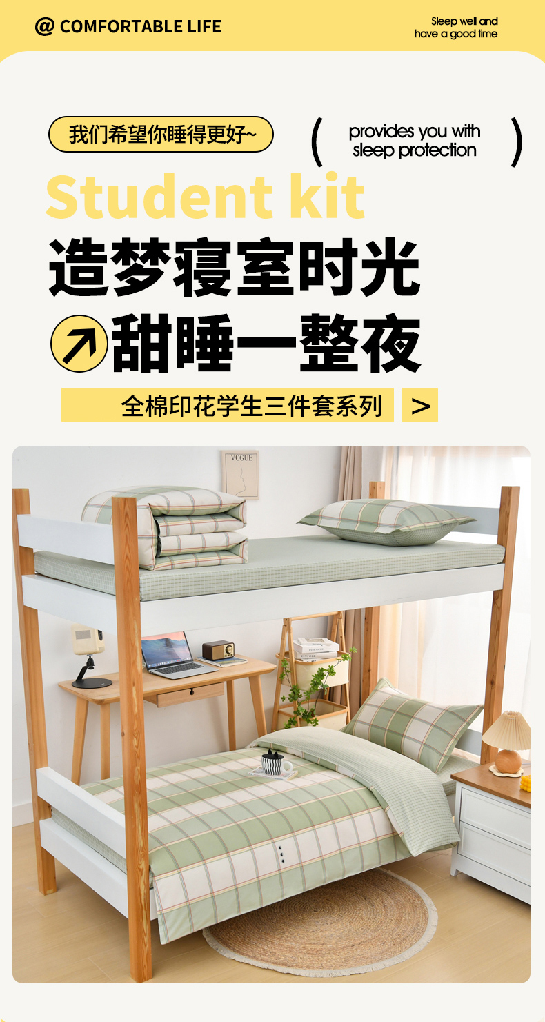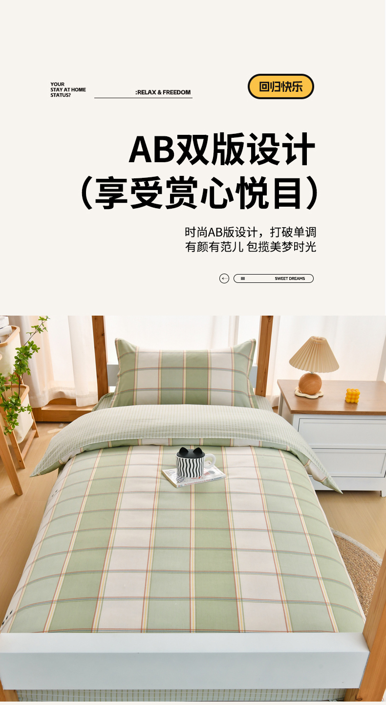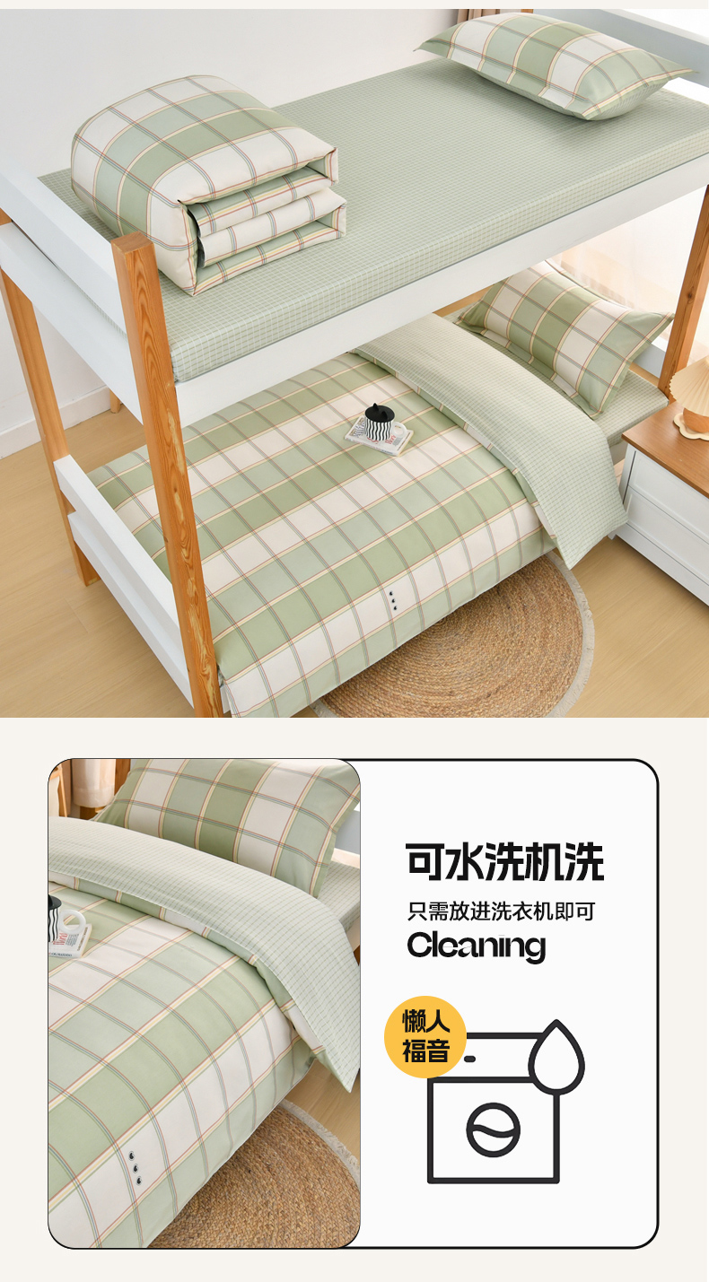 当前位置: 91家纺网 > 商品网购 > 床品套件 > 四件套 > 全棉普通四件套 > 乐旗家纺 2025新款全棉13372印花学生上下铺套件宿舍三件套 闲趣-绿
