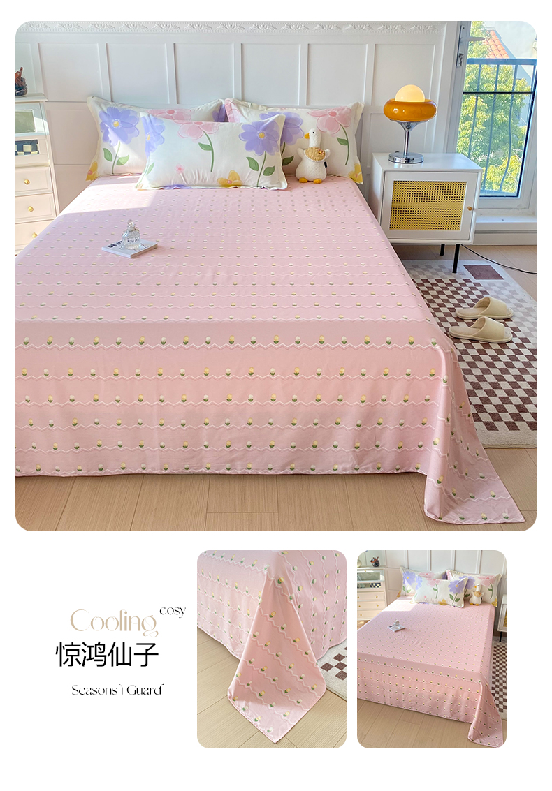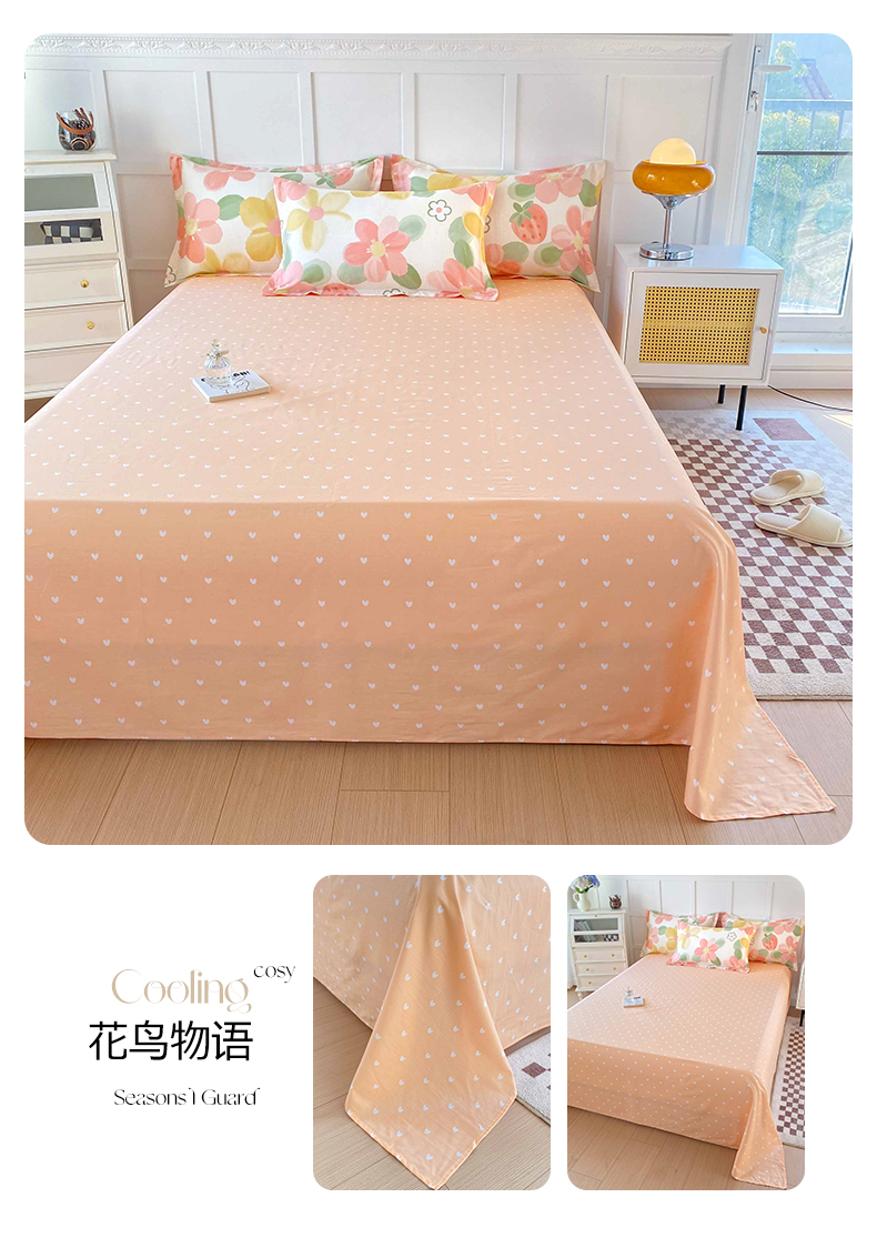小叮当家纺仓储工厂店 (爆款花型 长期款 不断货)2025新款小清新印花条纹卡通花卉纯棉全棉单品系列--单床单 花满城-绿