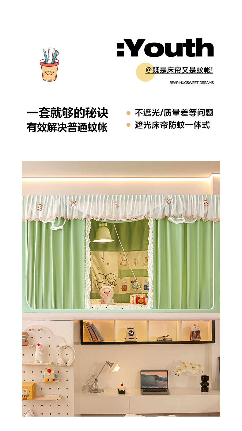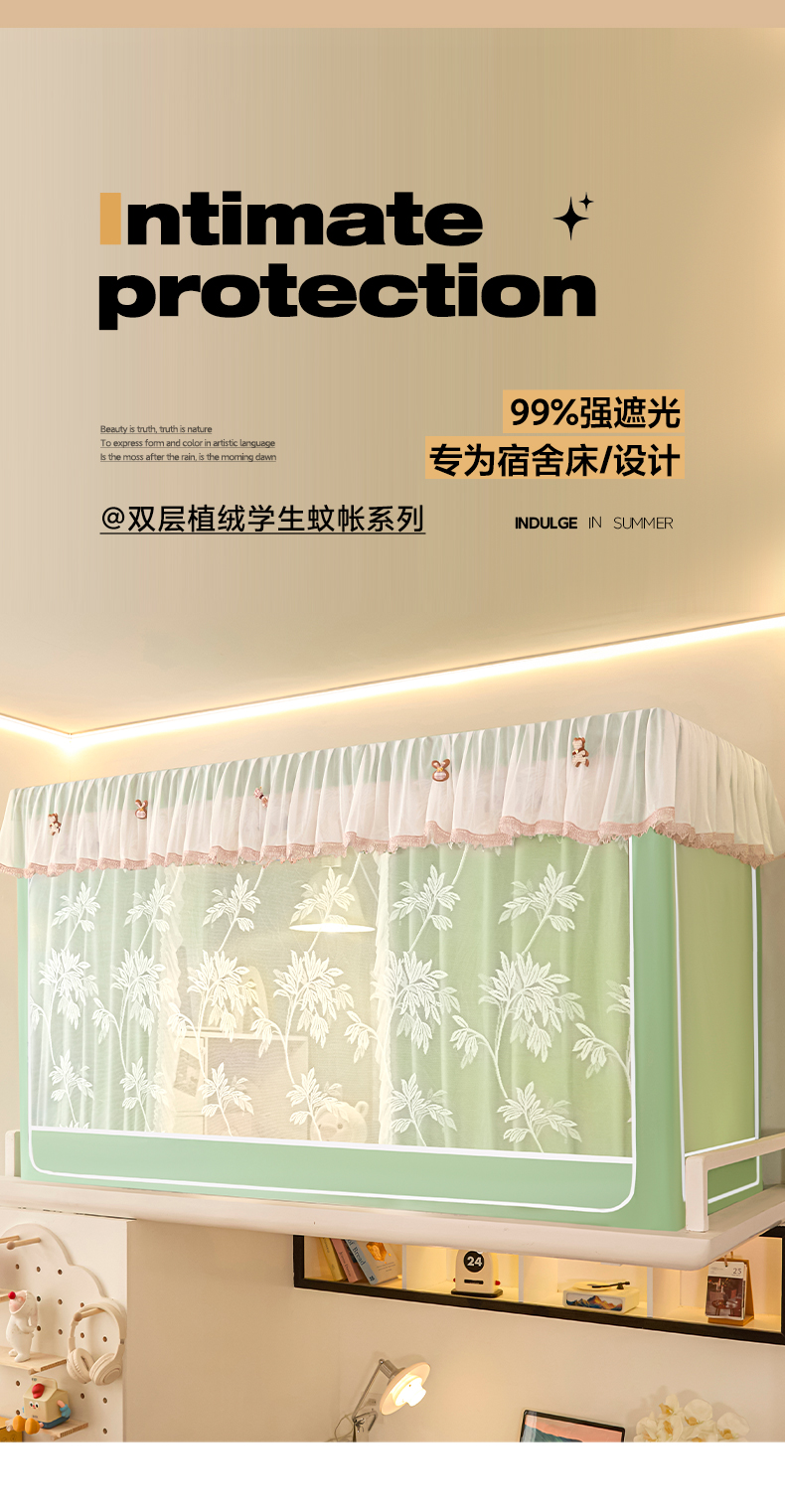 当前位置: 91家纺网 > 商品网购 > 床上用品 > 蚊帐 > 学生蚊帐 > 世婕 2025新款防蚊帐纱植绒遮光帘二合一双层学生蚊帐系列-提花款 提花款-抹茶绿