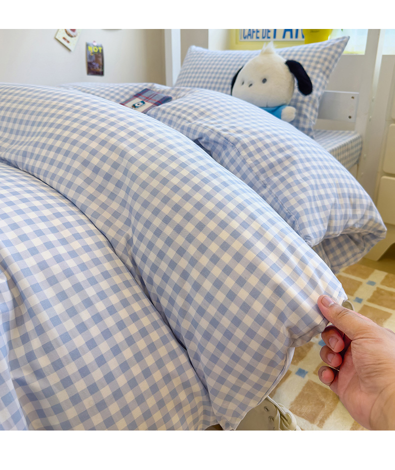 蓝冰家纺 2025新款学生水洗棉宿舍上下铺三件套 绿色条纹