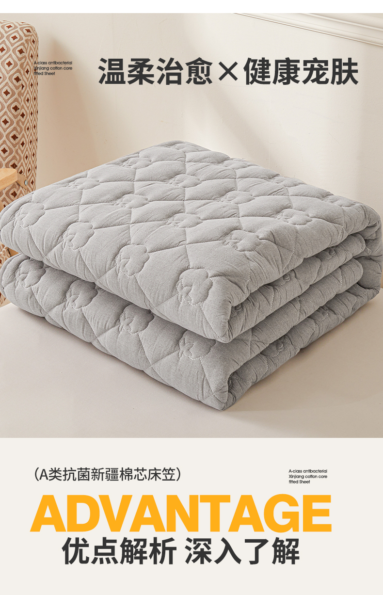 • 91家纺网 家纺一手货源 找家纺 西域种棉人·千百笠 2025新款A类抗菌100%新疆棉花填充夹棉纯棉床笠母婴级床笠单件床罩保护罩套全 娴雅床笠-灰