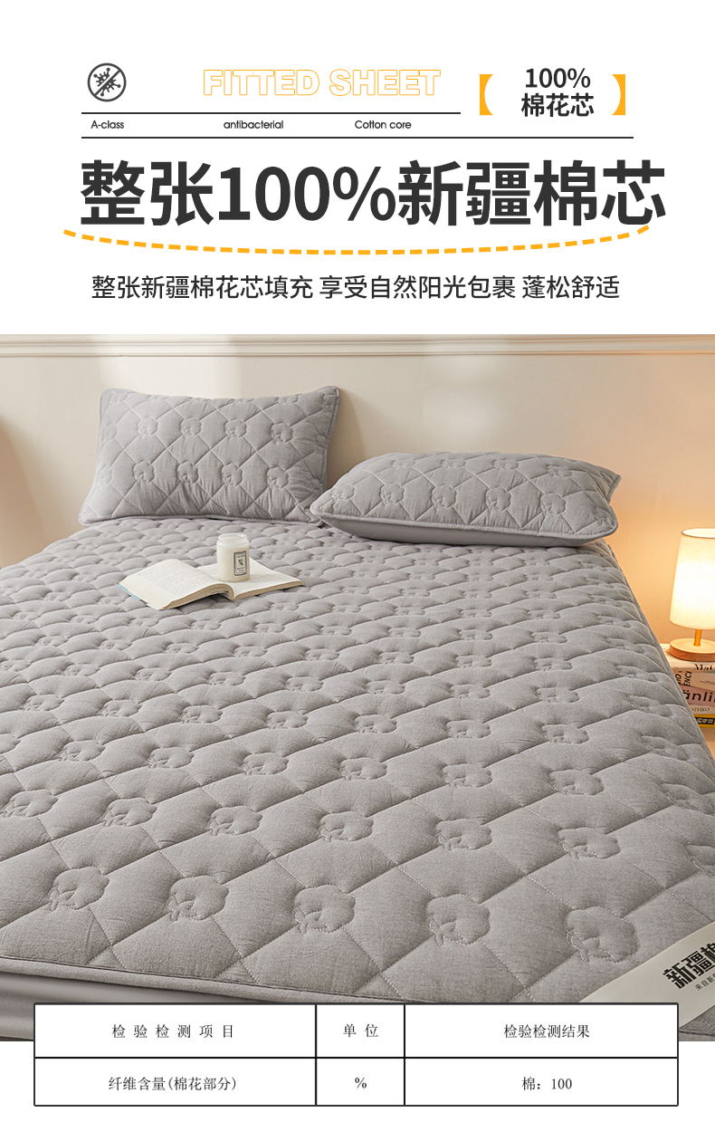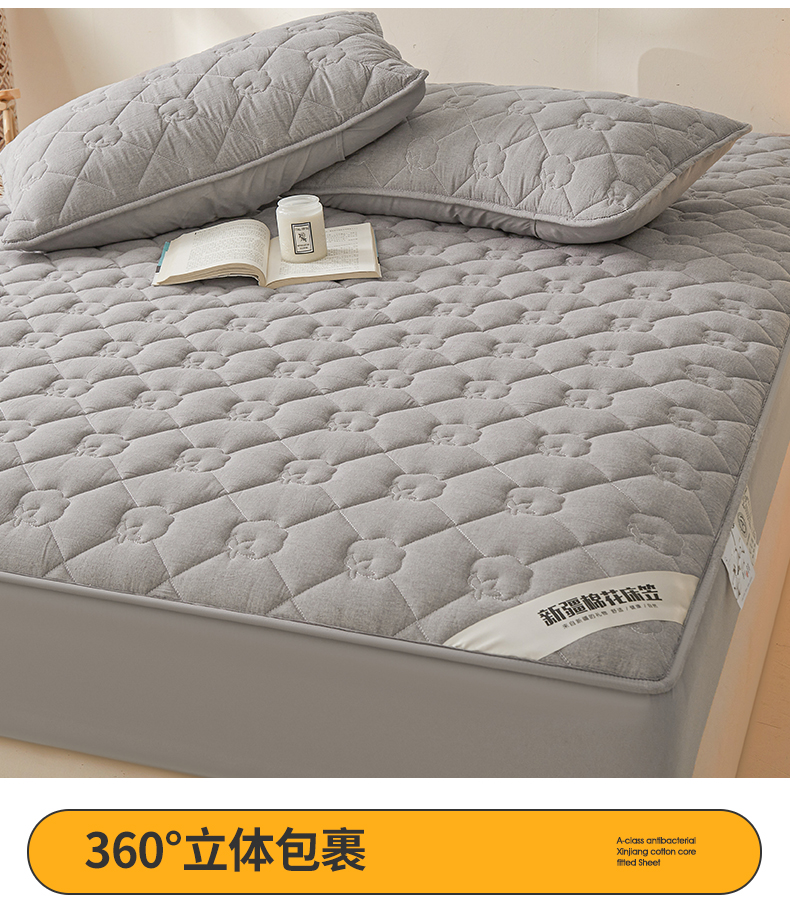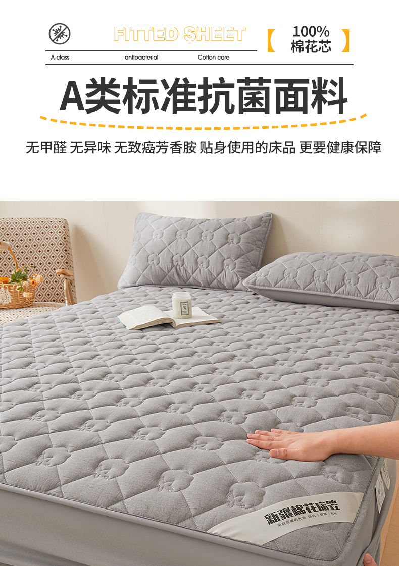 西域种棉人·千百笠 2025新款A类抗菌100%新疆棉花填充夹棉纯棉床笠母婴级床笠单件床罩保护罩套全 娴雅床笠-灰