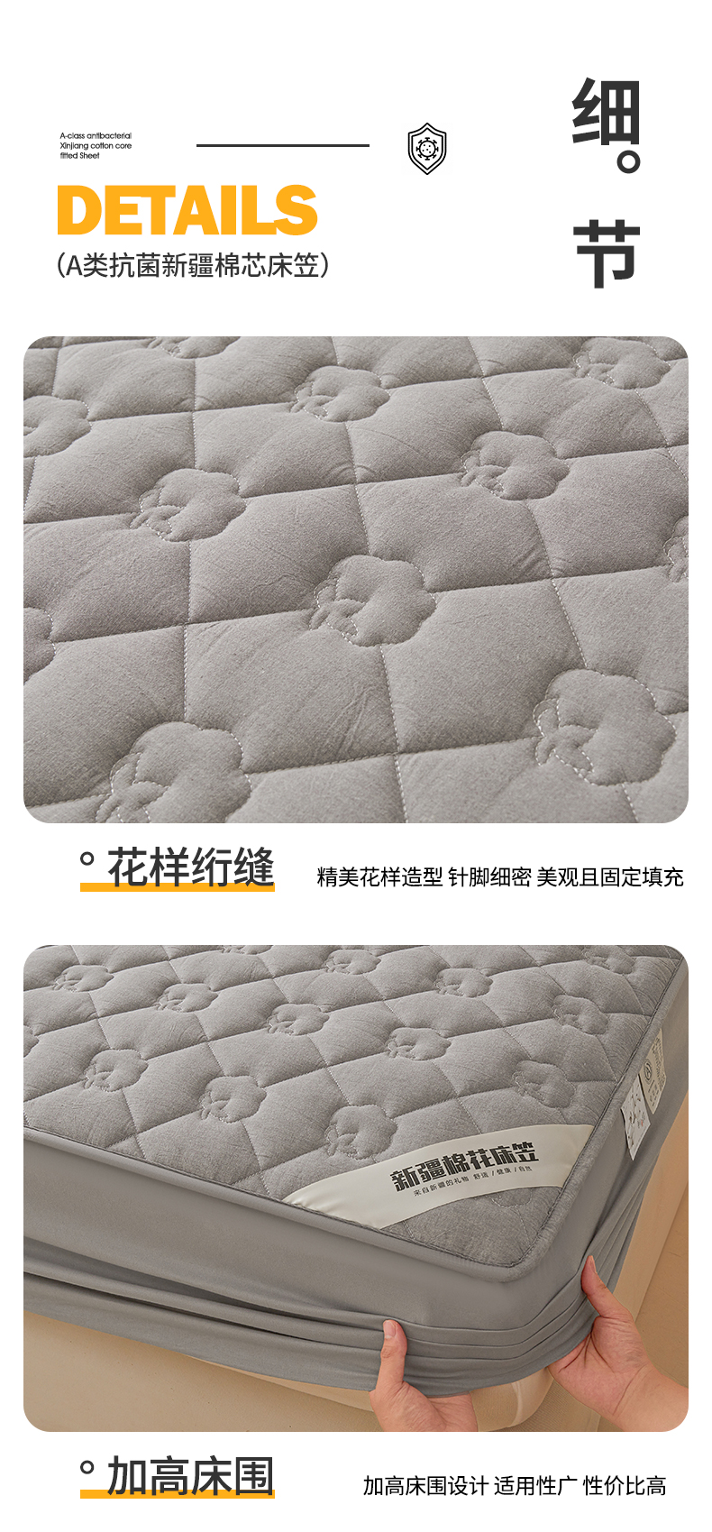 • 91家纺网 家纺一手货源 找家纺 西域种棉人·千百笠 2025新款A类抗菌100%新疆棉花填充夹棉纯棉床笠母婴级床笠单件床罩保护罩套全 娴雅床笠-灰 91家纺网 家纺一手货源 找家纺 西域种棉人·千百笠 2025新款A类抗菌100%新疆棉花填充夹棉纯棉床笠母婴级床笠单件床罩保护罩套全 娴雅床笠-灰