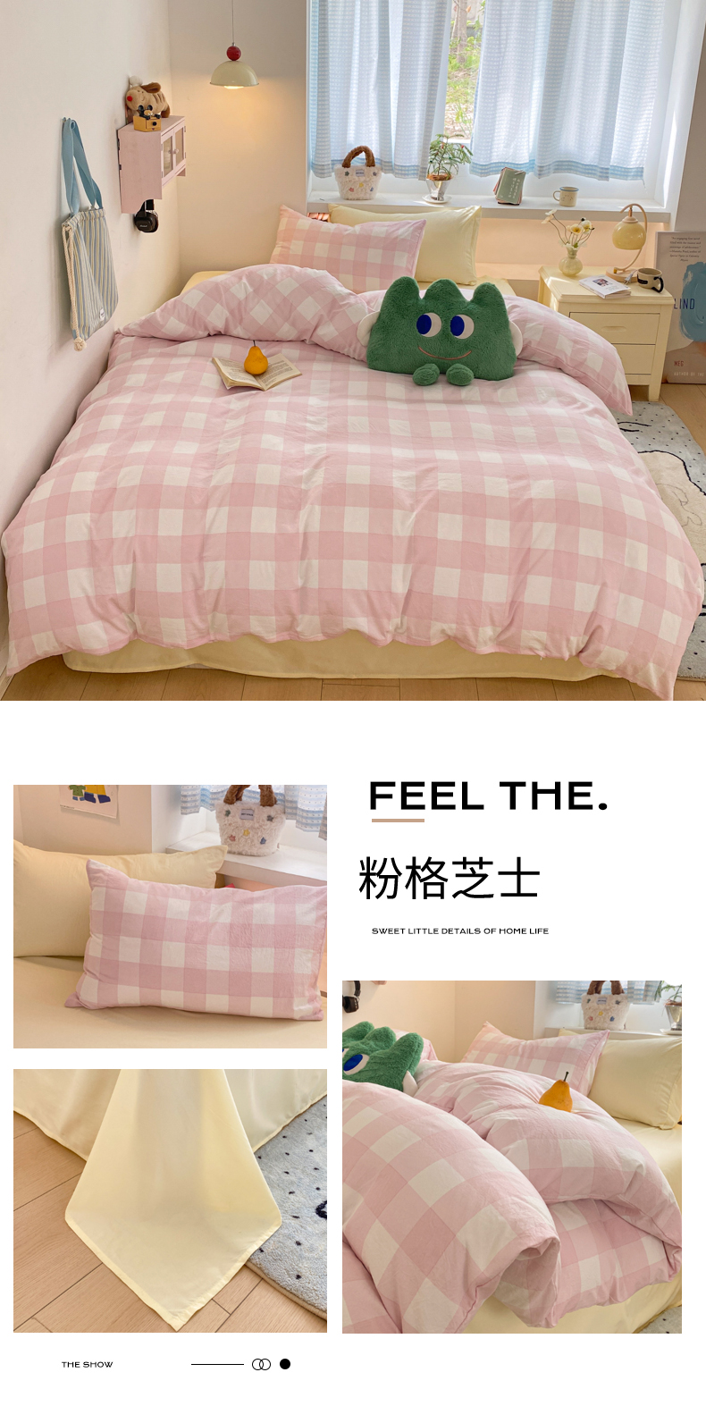 当前位置: 91家纺网 > 商品网购 > 床品套件 > 四件套 > 雨帆家纺 2025新款时尚印花水洗棉混搭四件套 粉格芝士