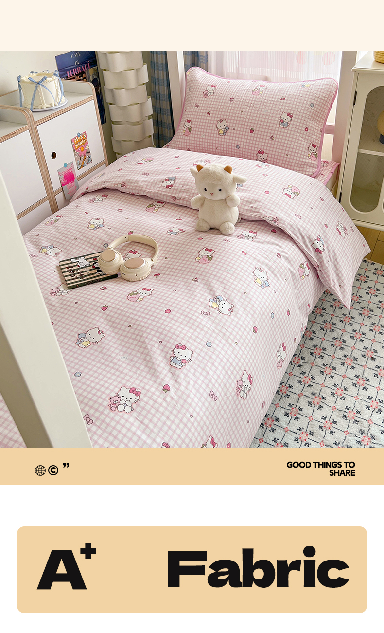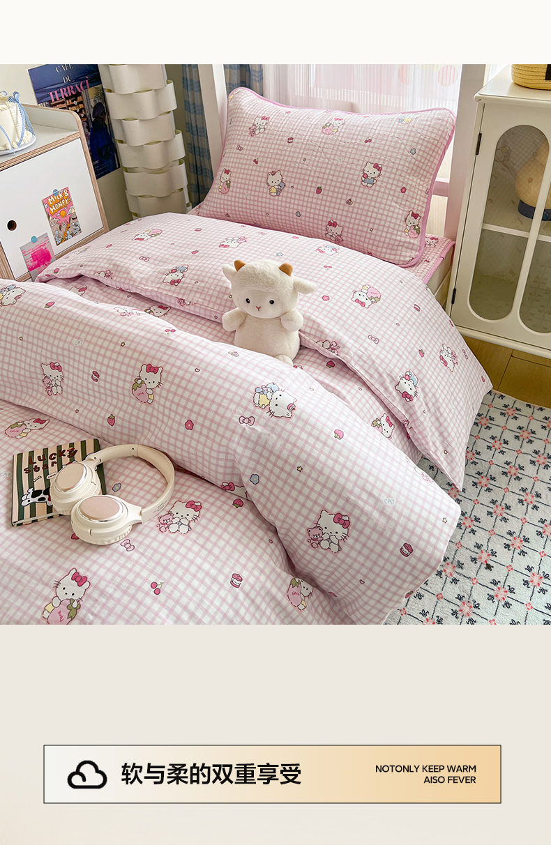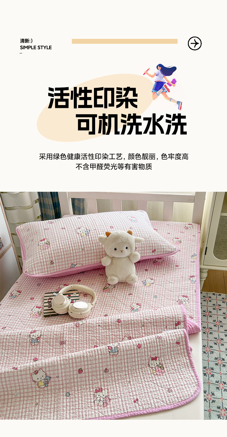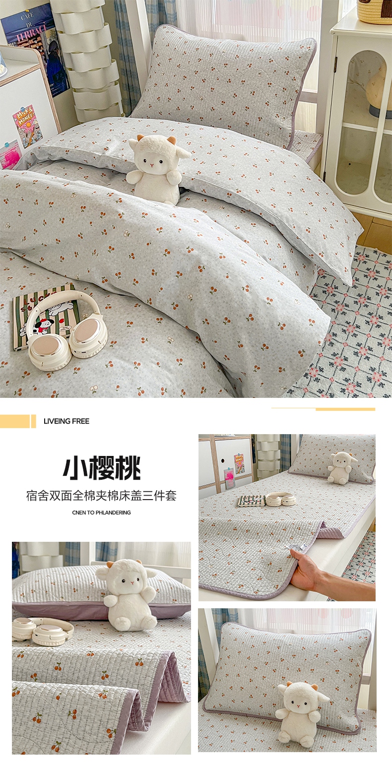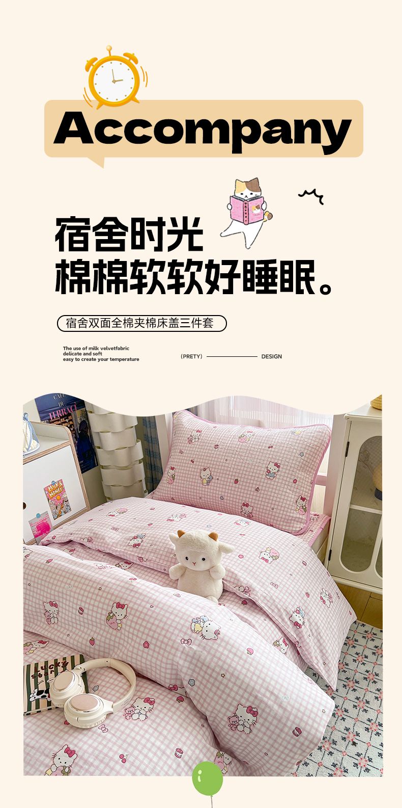 商品名称:沐纯家居 2025新款学生款双面纯棉棉花床盖三件套 宠物猫