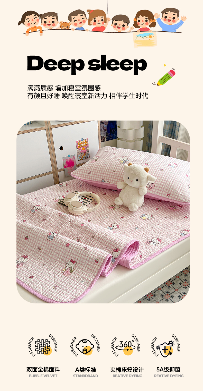 沐纯家居 2025新款学生款双面纯棉棉花床盖三件套 宠物猫