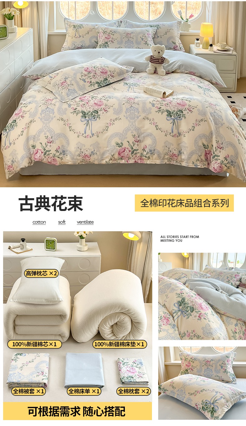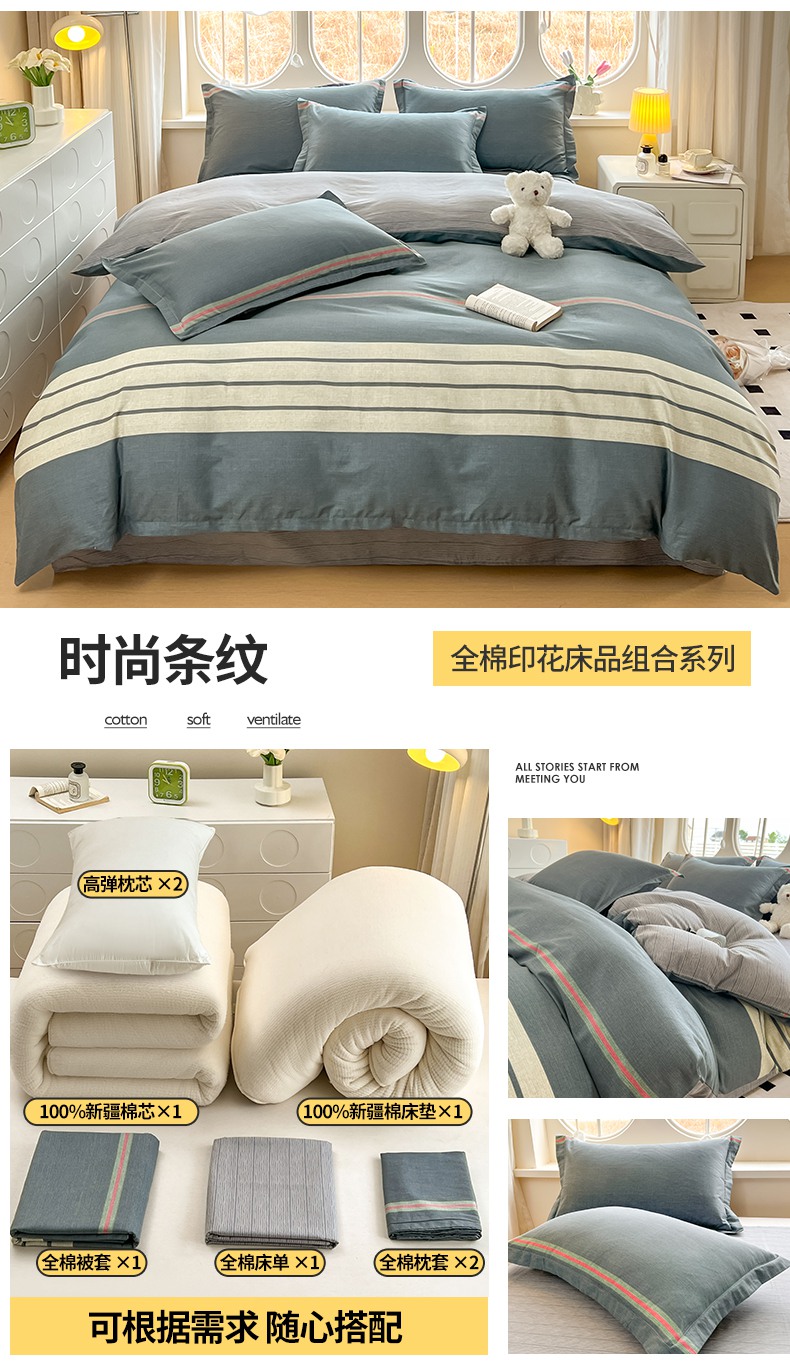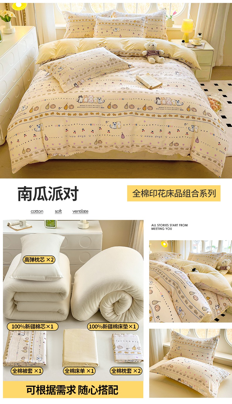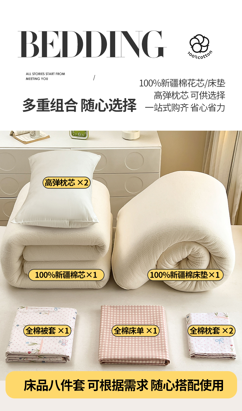 商品名称:(总)西域种棉人·千百笠 2025新款全棉纯棉大学生宿舍100%新疆棉花被子被褥一整套枕头床垫三件套六件套