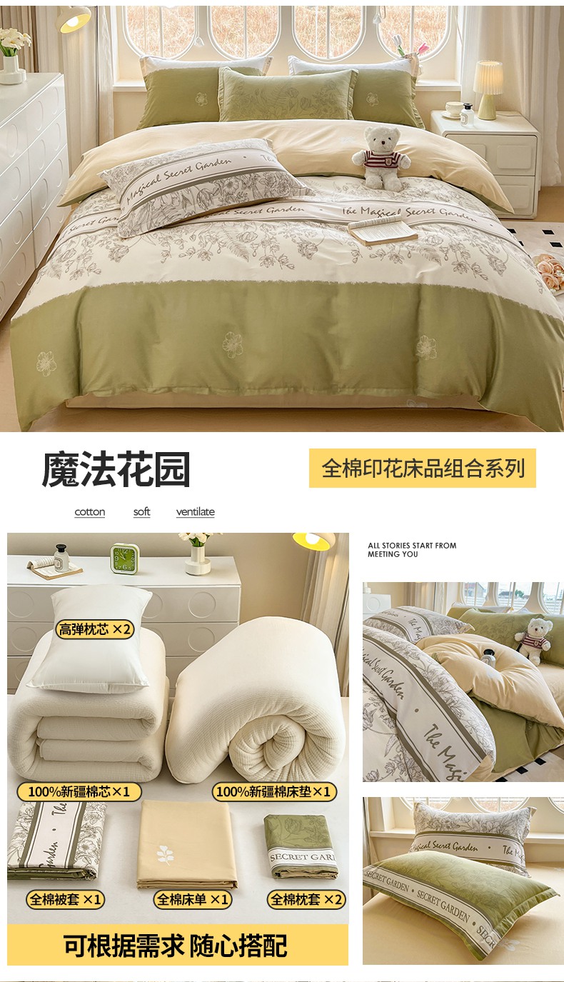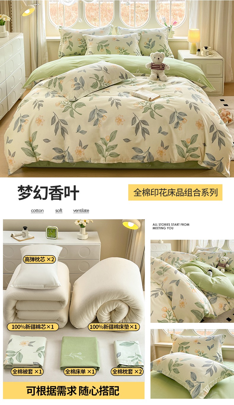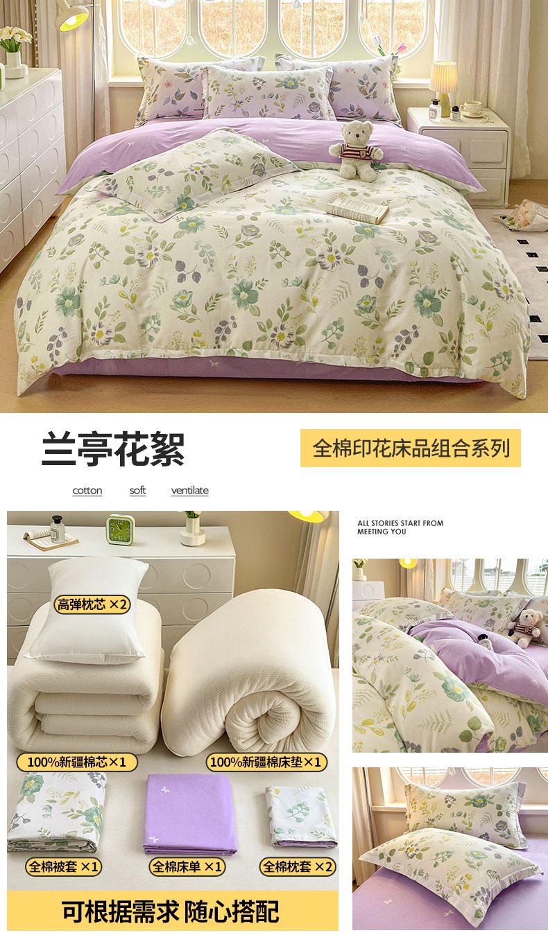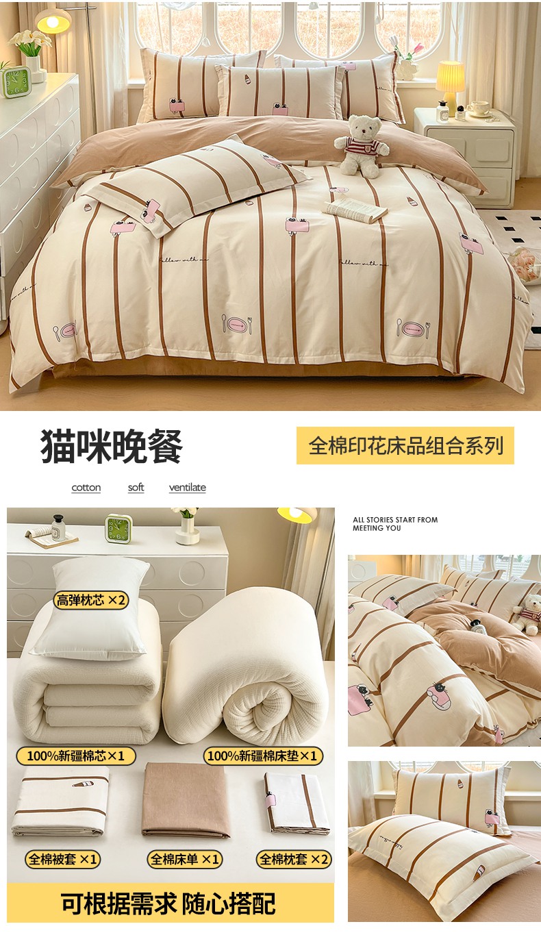 商品名称:(总)西域种棉人·千百笠 2025新款全棉纯棉大学生宿舍100%新疆棉花被子被褥一整套枕头床垫三件套六件套