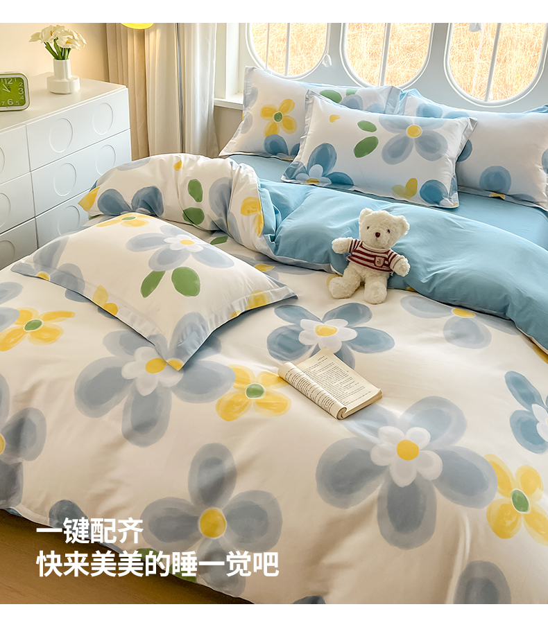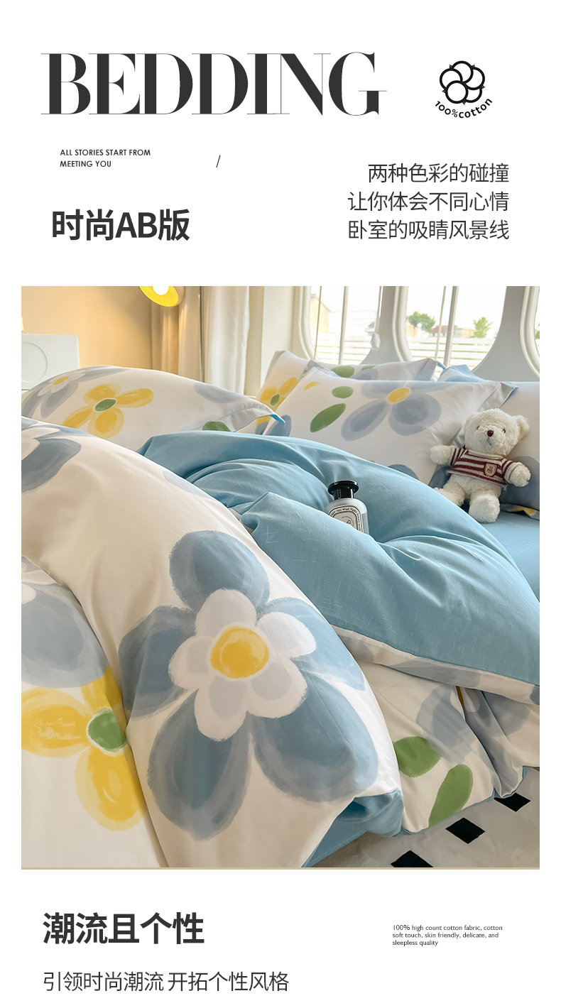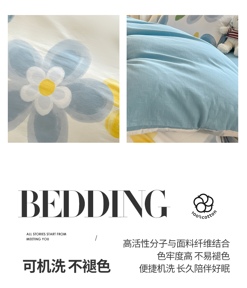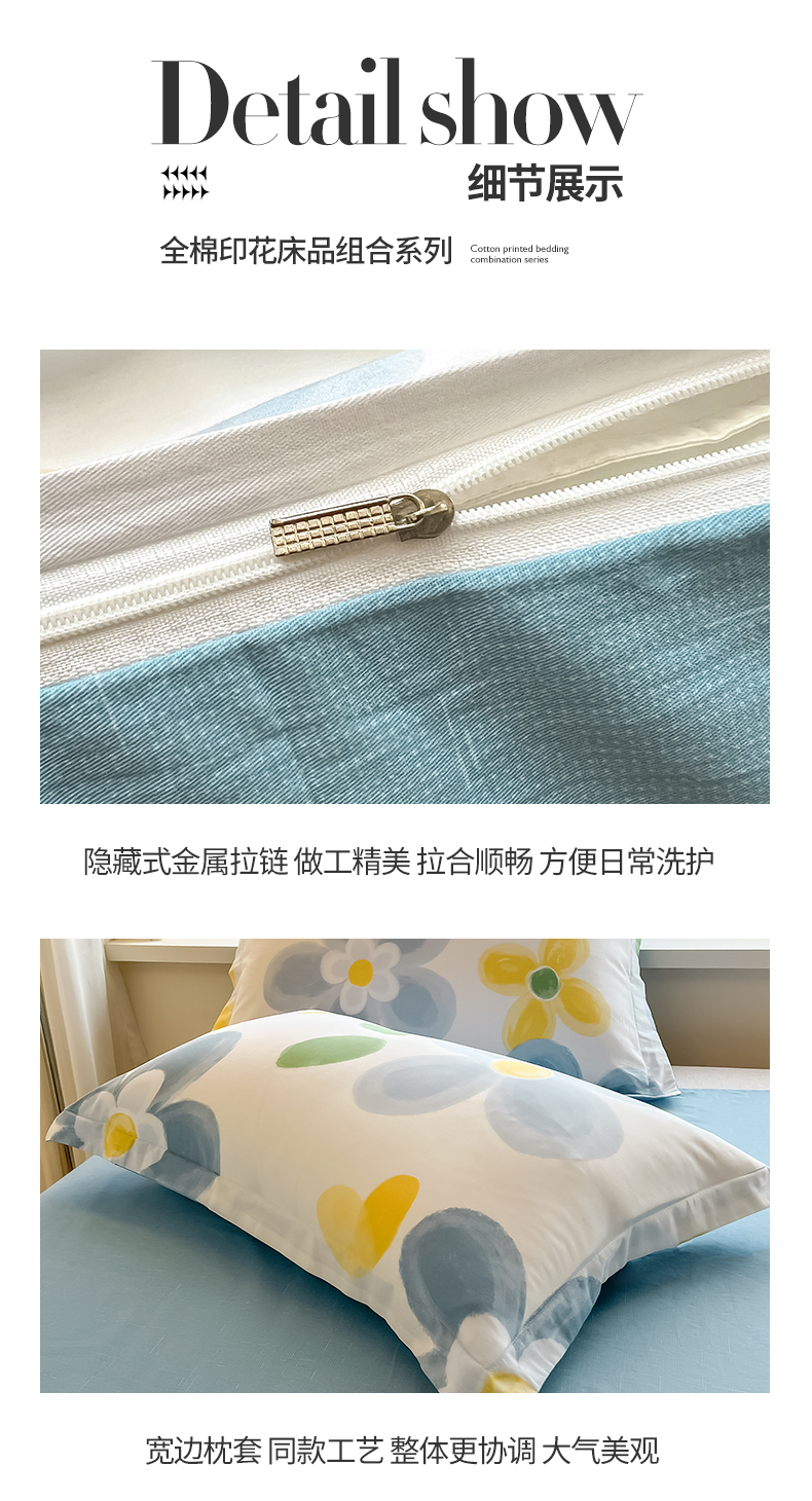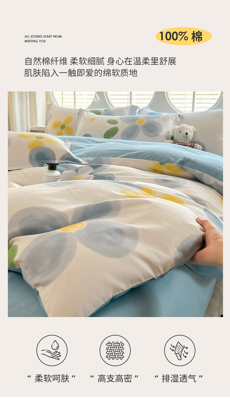 商品名称:西域种棉人·千百笠 2025新款全棉纯棉大学生宿舍100%新疆棉花被子被褥一整套枕头床垫三件套六件套 墨雨花朵