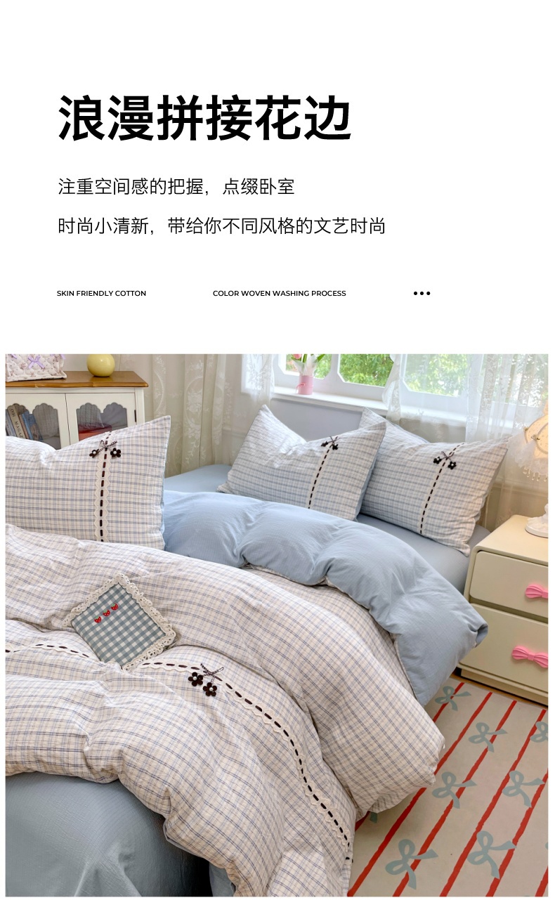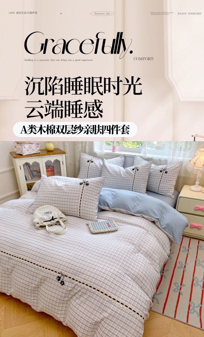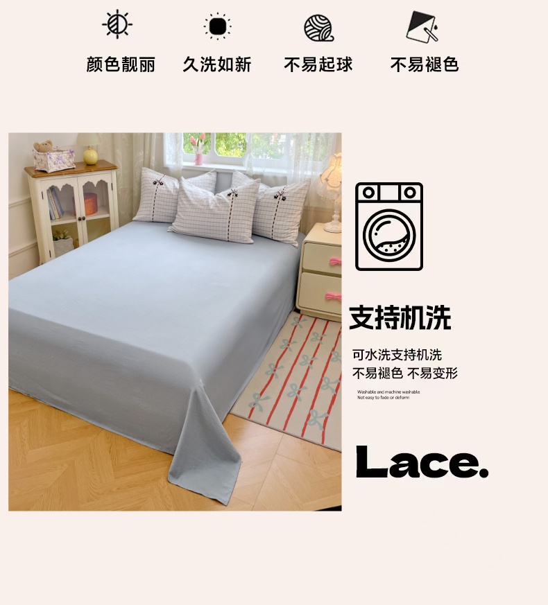 当前位置: 91家纺网 > 商品网购 > 床品套件 > 四件套 > 双层纱四件套 > 梦舒羽2025新款双层纱蕾丝花边四件套学生宿舍床单款床上用品四件套 蕾丝花边-天空蓝格