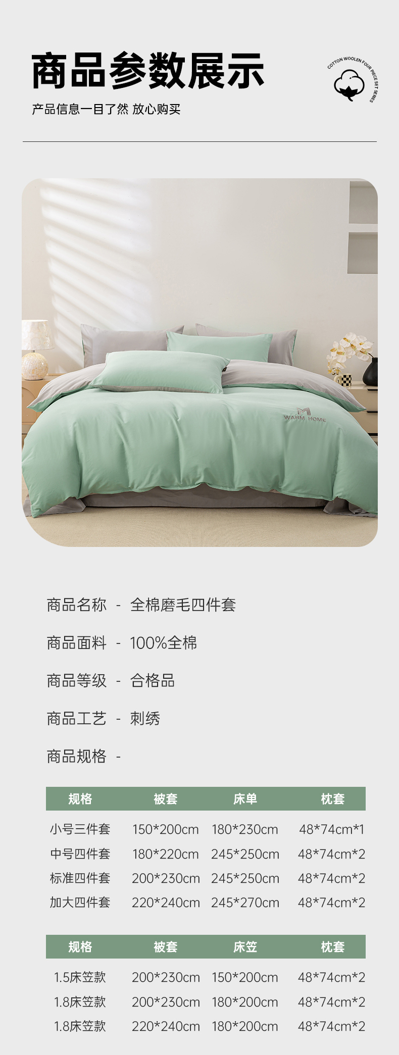 【床笠款】1.5四件套-被套200x230 | ¥150.00 |