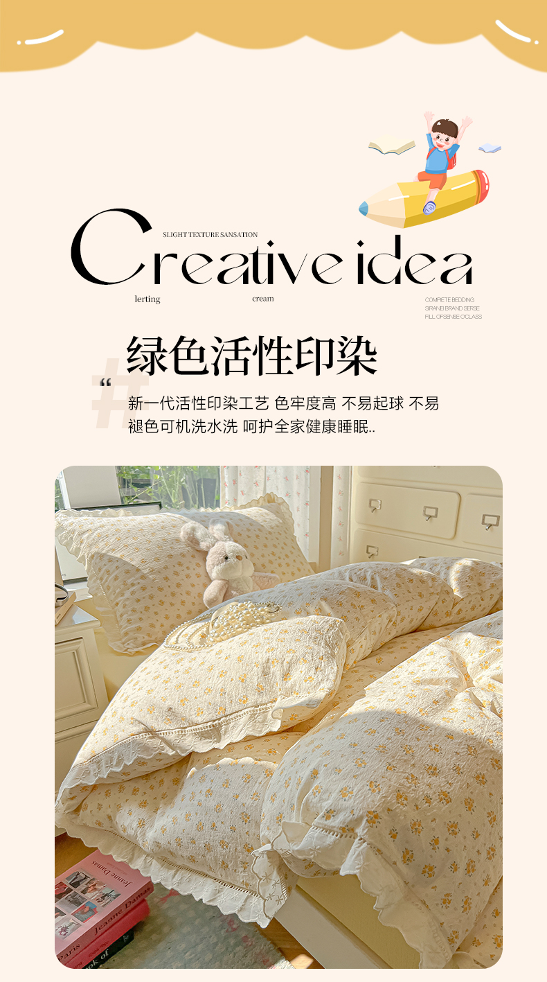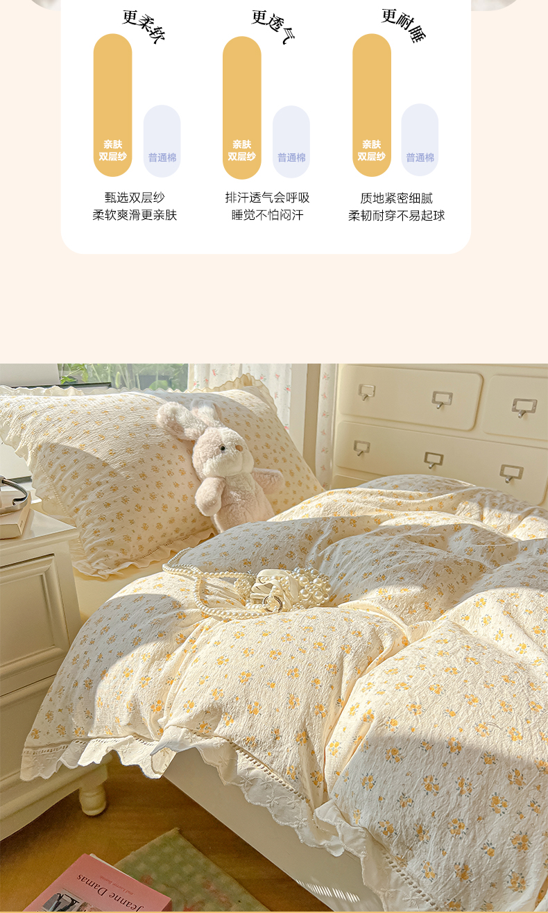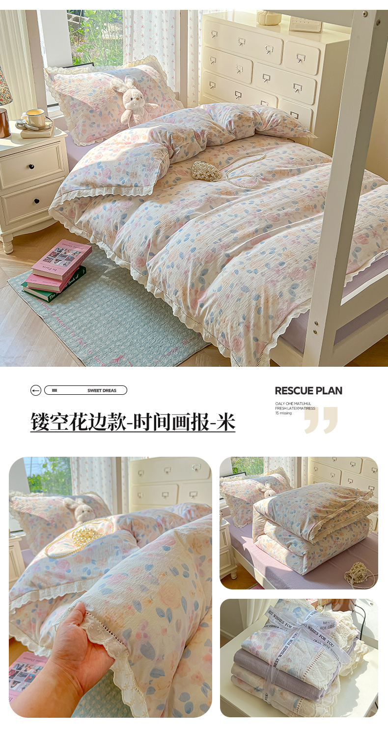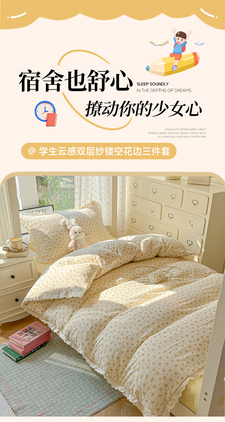 当前位置: 91家纺网 > 商品网购 > 床品套件 > 三件套 > 韩巢家纺 2025新款学生宿舍三件套上下铺学生季开学季床品 镂空花边款-橘子海